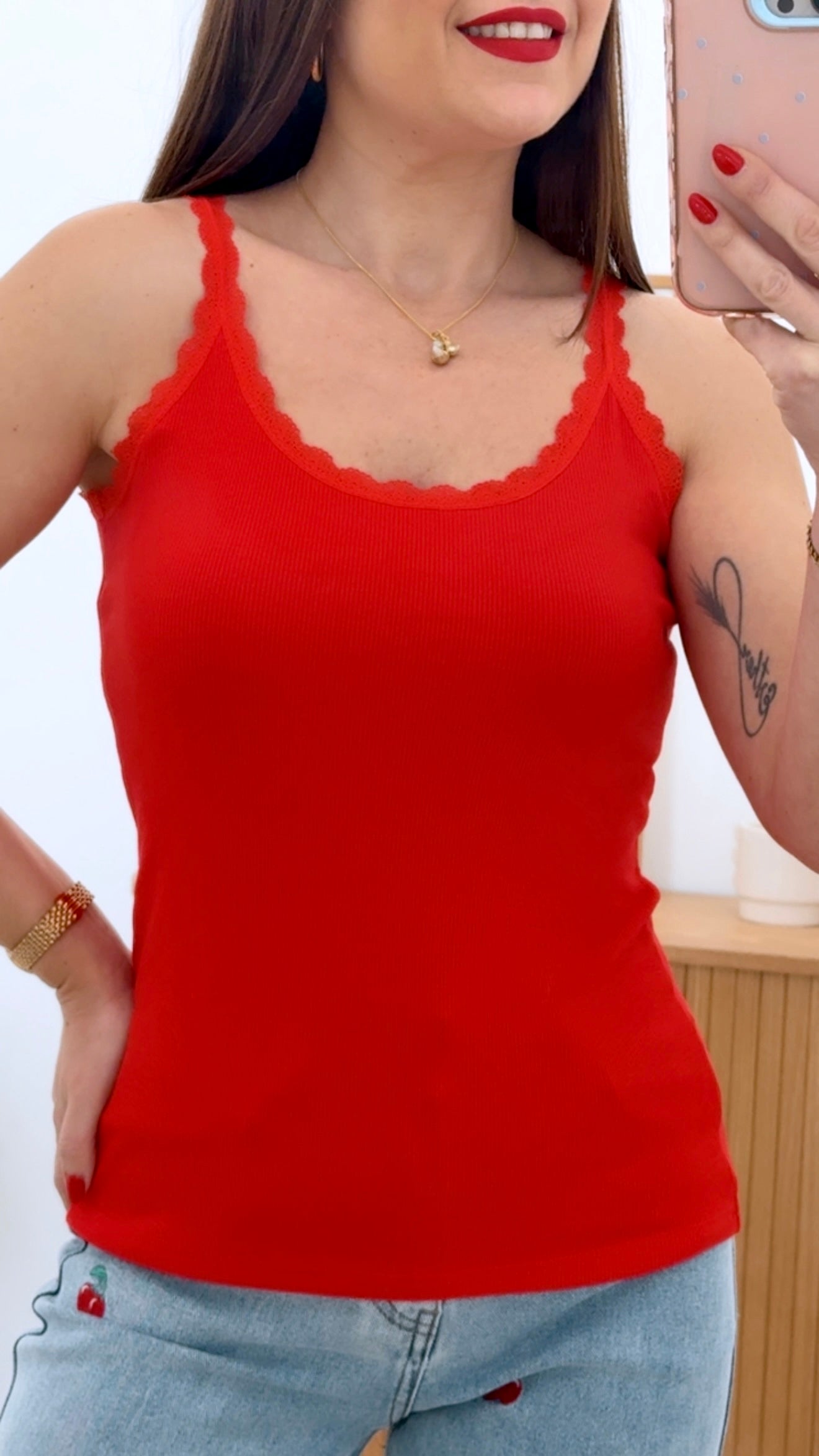 Camiseta básica de corte versátil confeccionada en tejido canalé de alta calidad. Diseño de tirante que proporciona comodidad y libertad de movimiento. Disponible en color liso, esta prenda es un imprescindible del armario que combina con cualquier look. Talla única adaptable. Perfecta para crear outfits casuales o más elaborados según la ocasión.