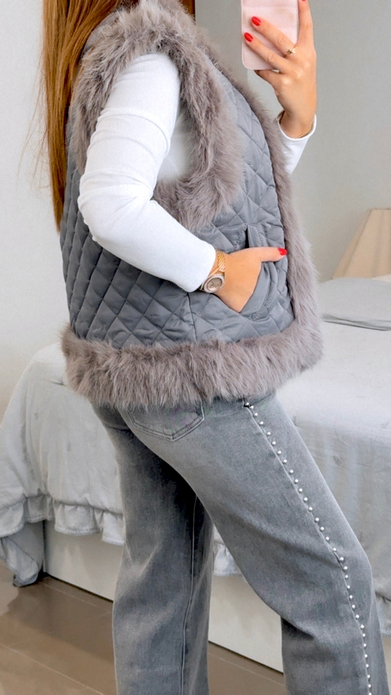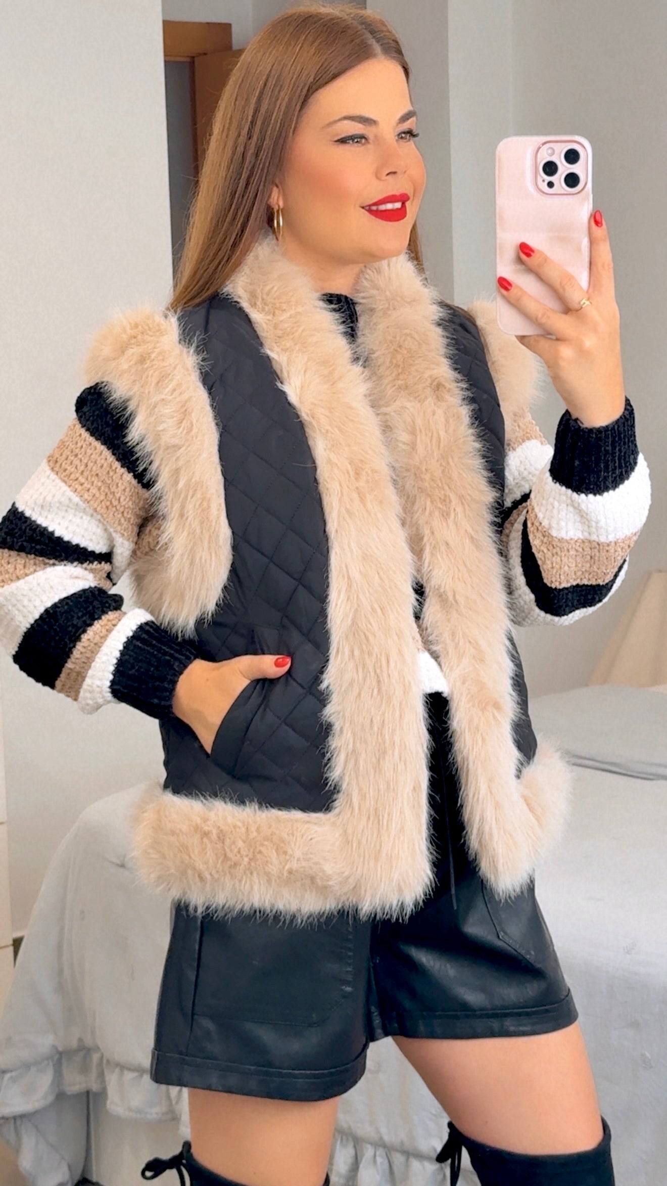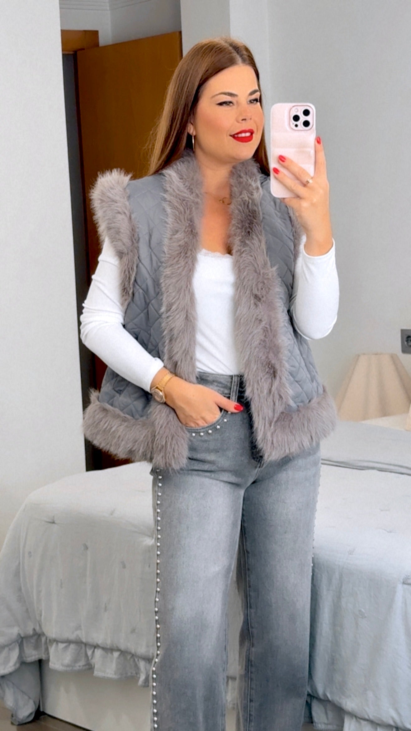 Este chaleco fabricado en 100% poliéster presenta una talla única que se adapta cómodamente a diversas siluetas. Su diseño combina distintos tejidos y tonalidades para aportar versatilidad y estilo, ideal para complementar cualquier vestuario con un toque moderno y sofisticado.