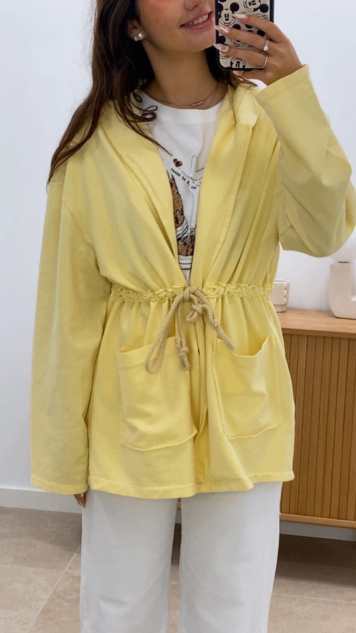Chaqueta versátil con capucha y cintura elástica mediante cordón para un ajuste personalizado. Confeccionada en 100% algodón de calidad, ofrece comodidad y transpirabilidad en cualquier estación. Disponible en color liso único que combina con cualquier estilo. Cuenta con bolsillos funcionales para guardar tus pertenencias. Pieza esencial para el guardarropa casual.