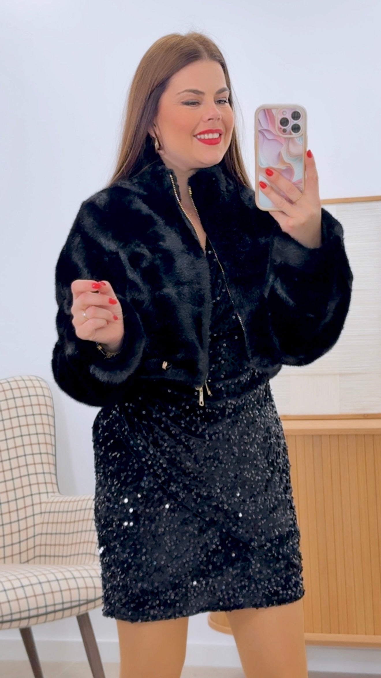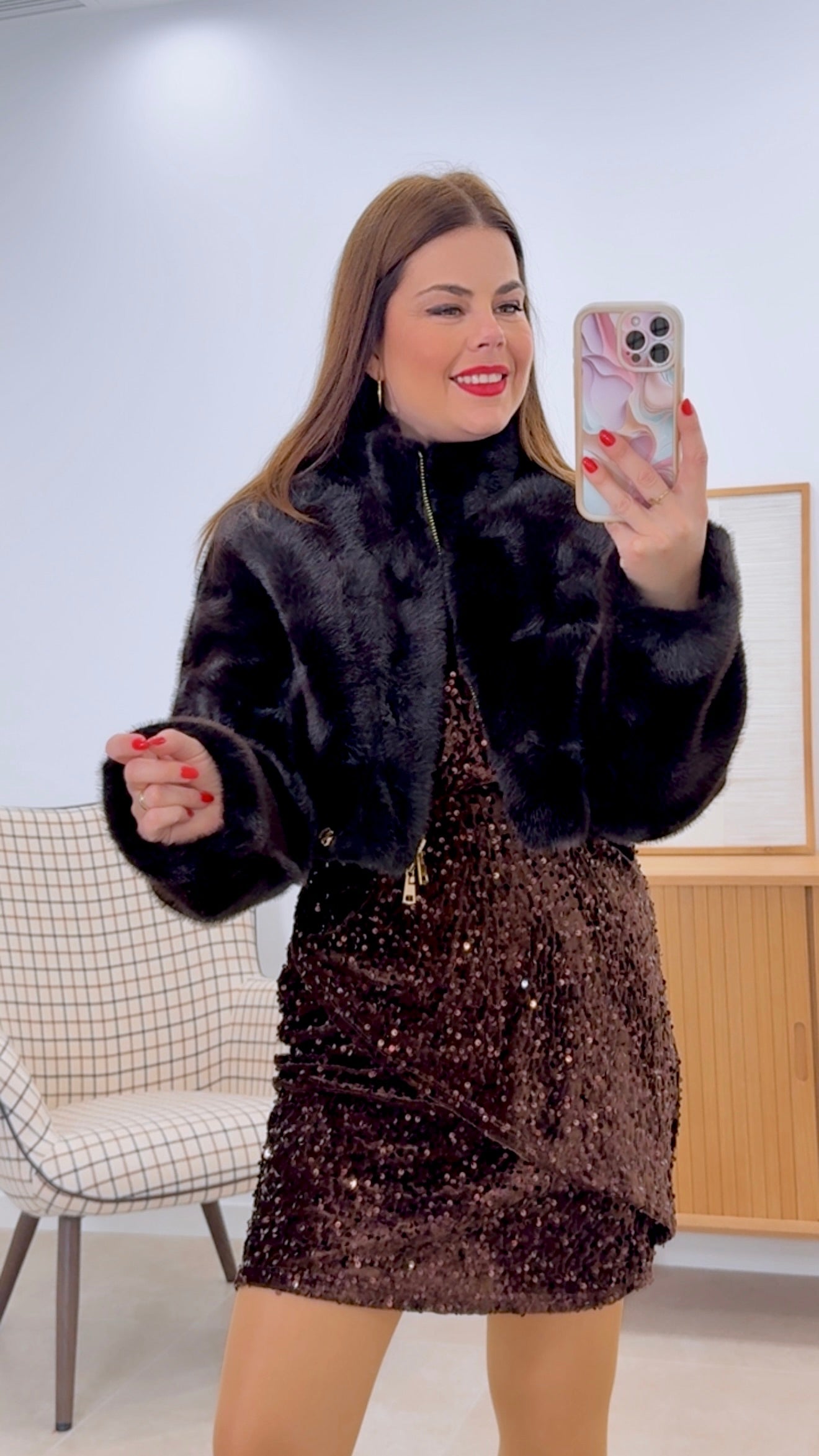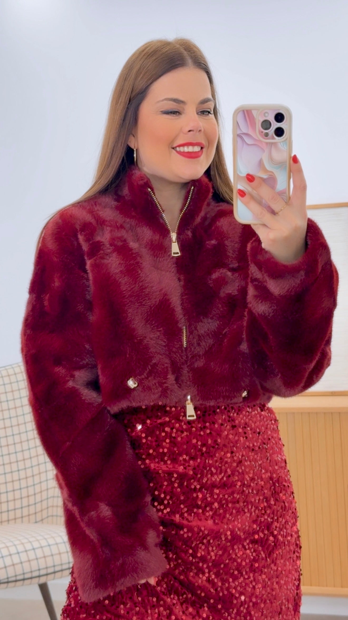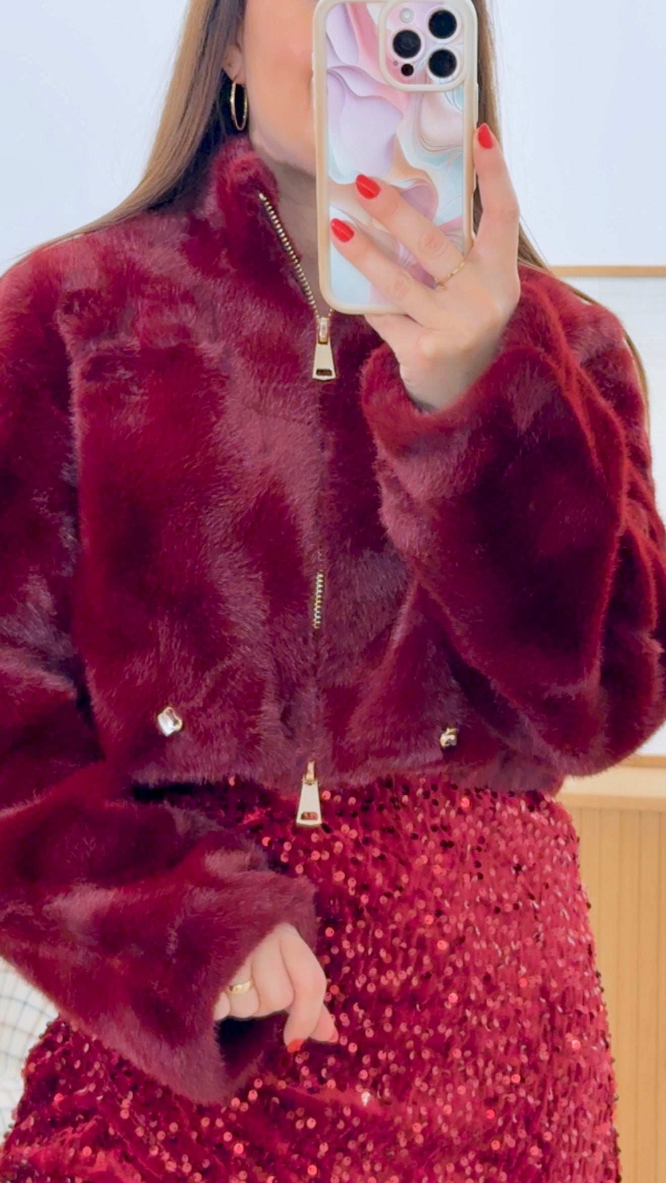 Chaqueta de pelo corto confeccionada en 100% poliéster de alta calidad. Diseño versátil con color liso que combina fácilmente con cualquier prenda. Cierre de cremallera para mayor comodidad y practicidad. Cintura ajustable que permite personalizar el ajuste según tu morfología. Disponible en tallas S a L para garantizar el mejor encaje. Prenda ideal para capas intermedias en transiciones de estación o como pieza clave en looks casuales modernos.