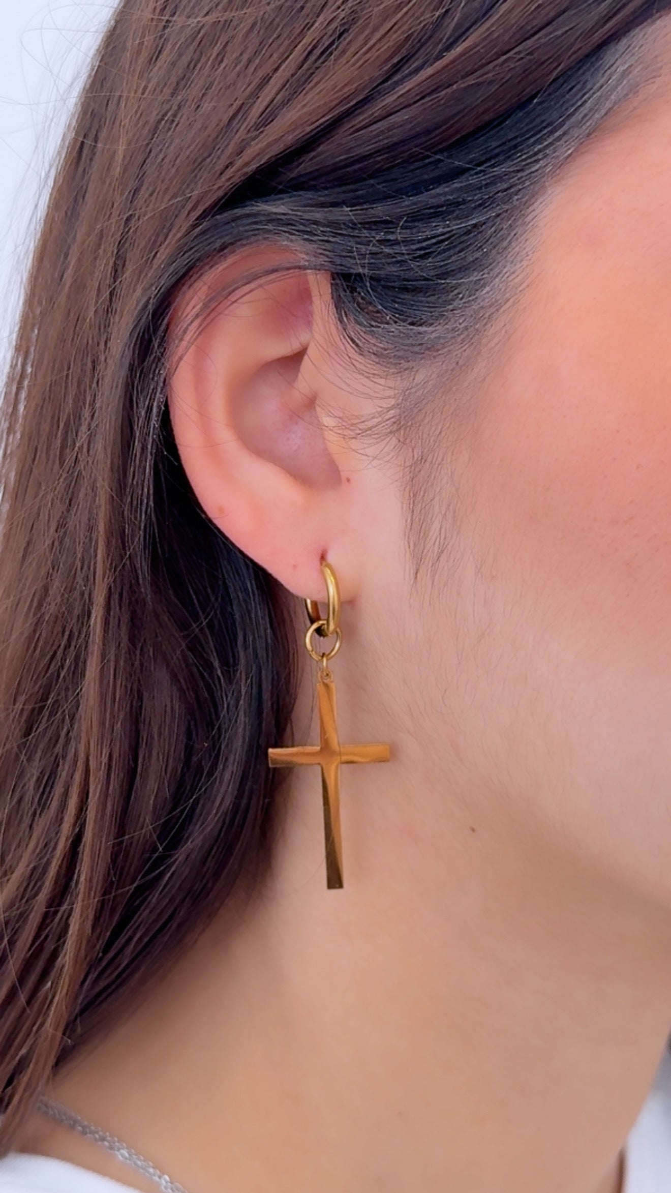 Estos pendientes de aro con cruz combinan elegancia clásica y simbolismo atemporal. Confeccionados con acabado dorado, presentan un diseño versátil que trasciende tendencias, perfecto para quienes buscan una joya con carácter y significado. El aro proporciona comodidad en el uso diario, mientras que el motivo de cruz añade una declaración de estilo sofisticado. Una pieza que funciona tanto en looks casuales como en ocasiones especiales, ideal para completar cualquier conjunto con distinción.
