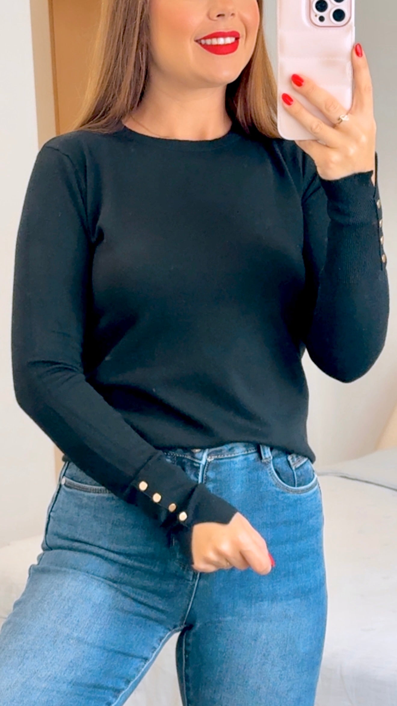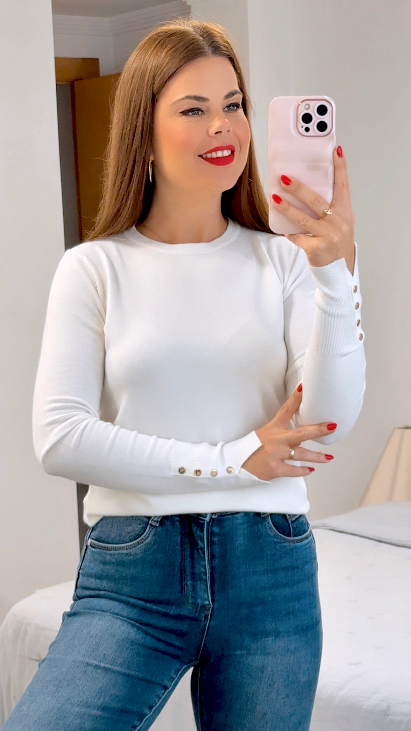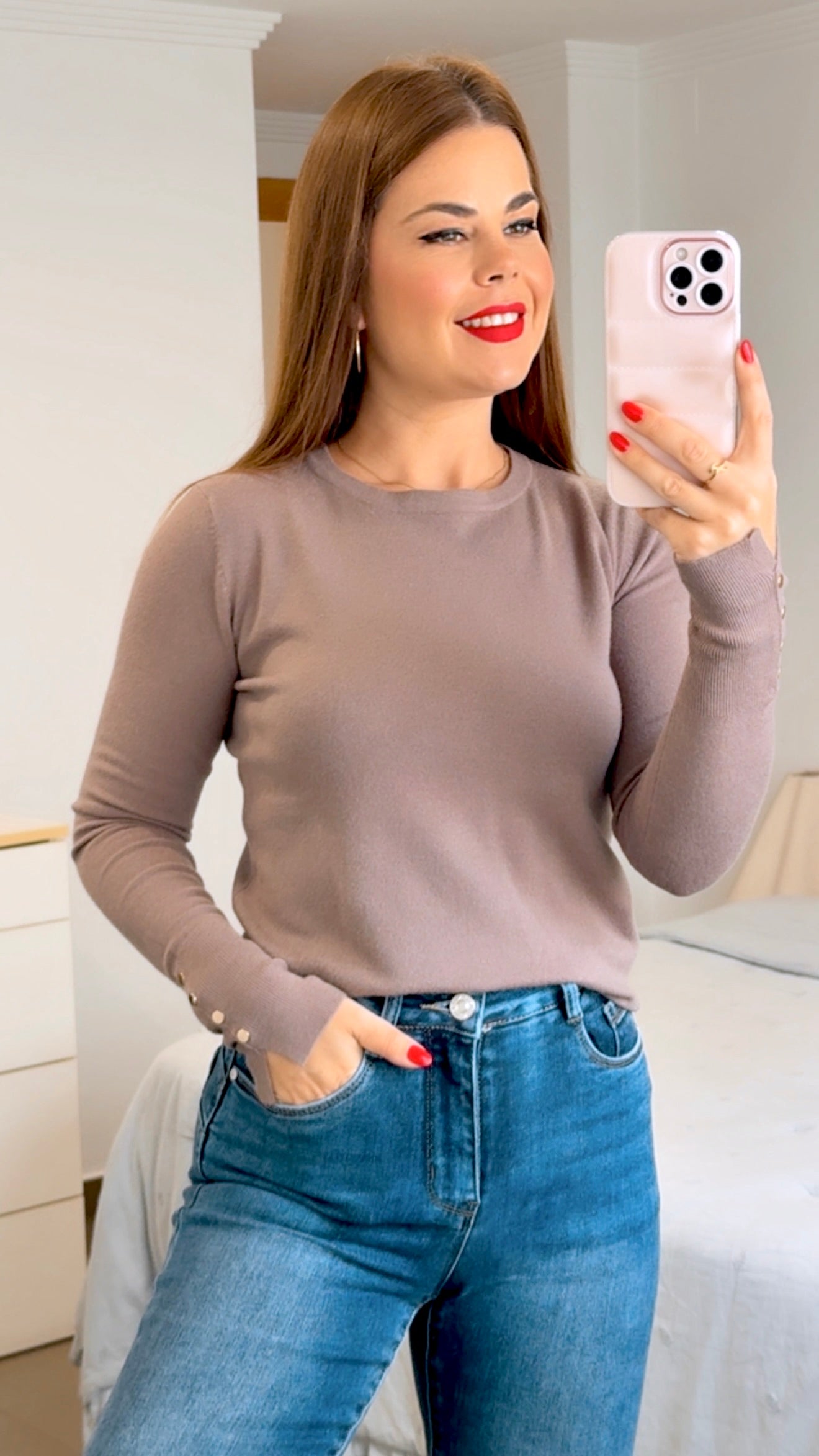Este suéter "Jose" en talla única está confeccionado con una mezcla premium de 60% viscosa, 30% poliamida y 10% elástico, garantizando una textura suave y un ajuste confortable. Su color liso y cuello redondo aportan versatilidad, mientras que los detalles en los puños añaden un toque de distinción, ideal para un uso diario sofisticado y cómodo.
