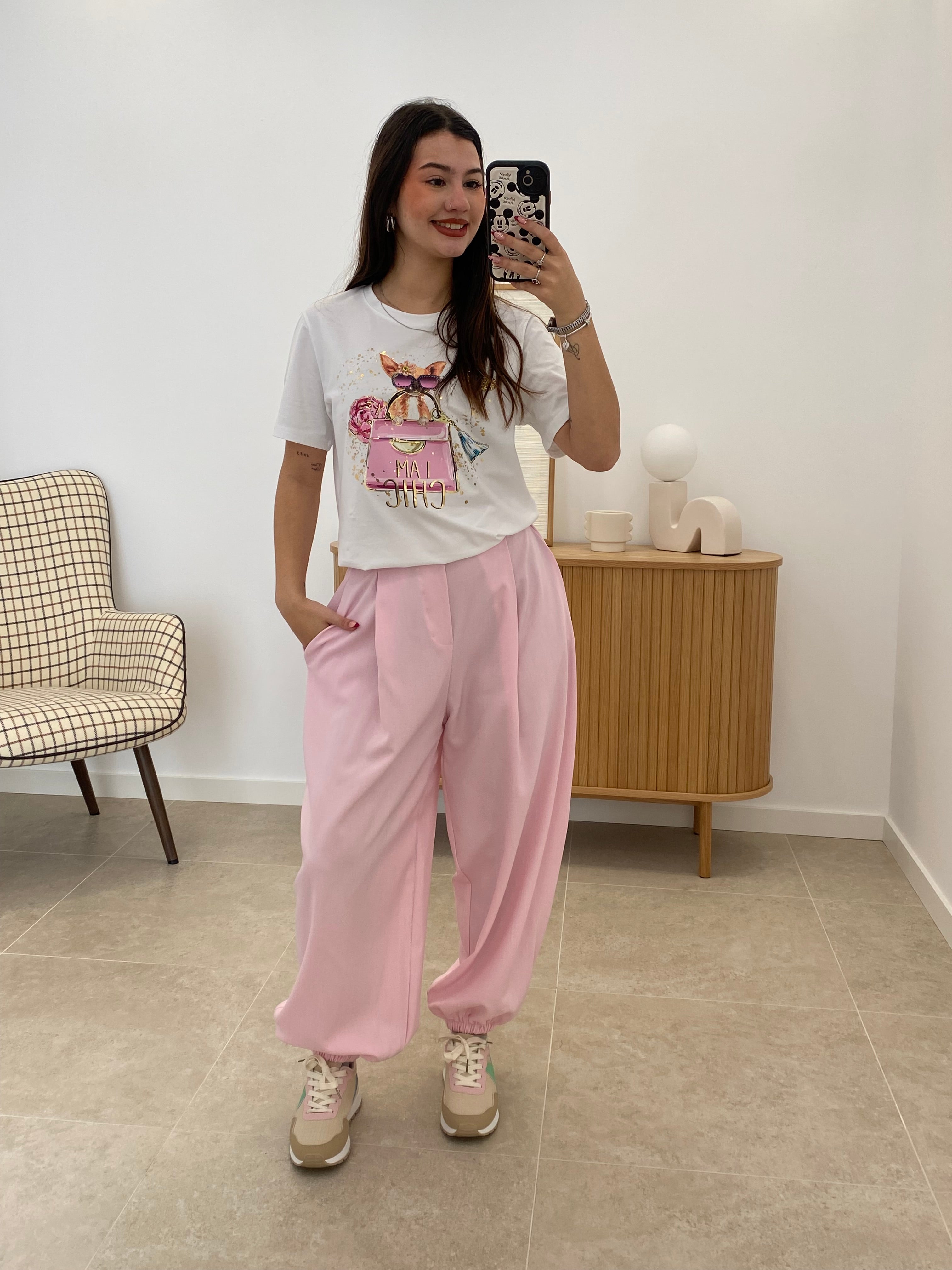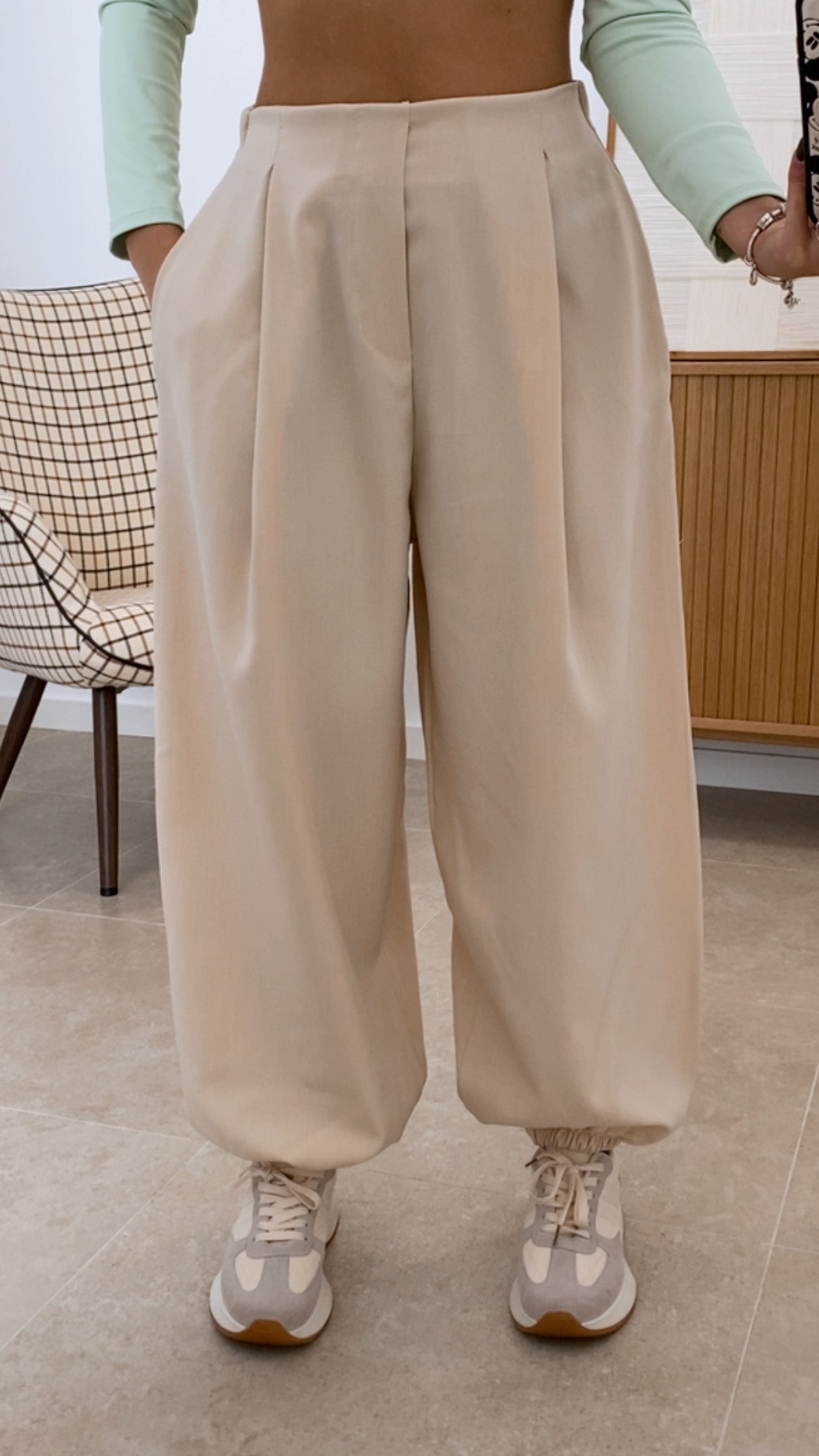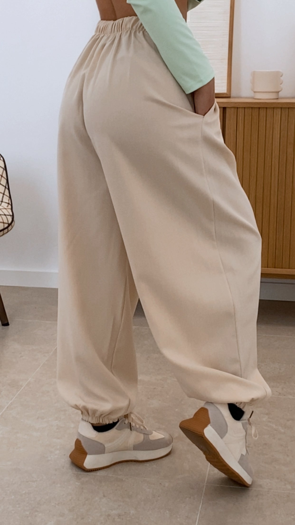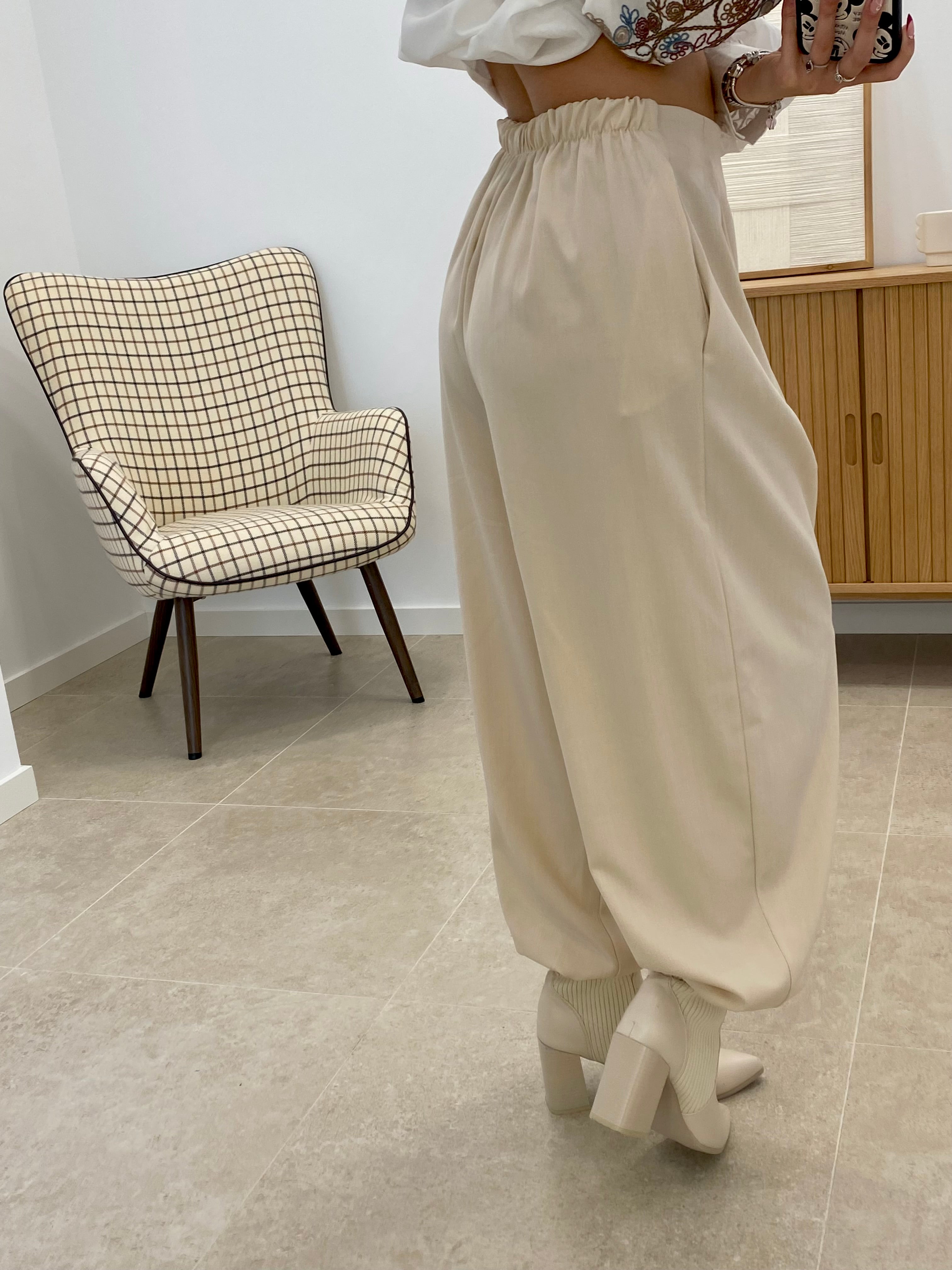 Pantalón ballon confeccionado en tejido de alta calidad que combina 92% poliéster, 3% elastano y 5% viscosa para máxima comodidad y durabilidad. Su corte holgado y relajado proporciona libertad de movimiento, mientras que el acabado engomado en los bajos le confiere un aspecto moderno y sofisticado. Disponible en talla única y color liso, es una pieza versátil que se adapta a diferentes estilos y ocasiones. La composición textil garantiza transpirabilidad y elasticidad para un ajuste perfecto durante todo el día.