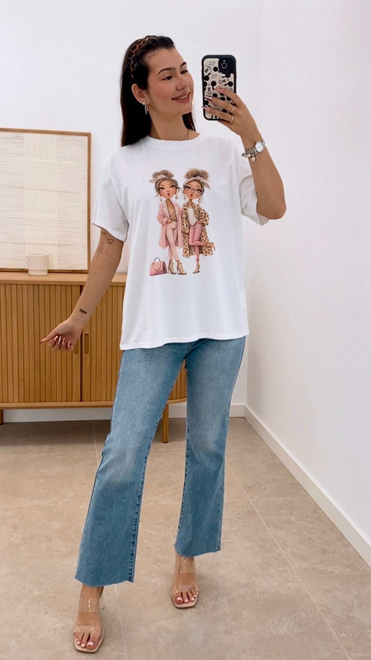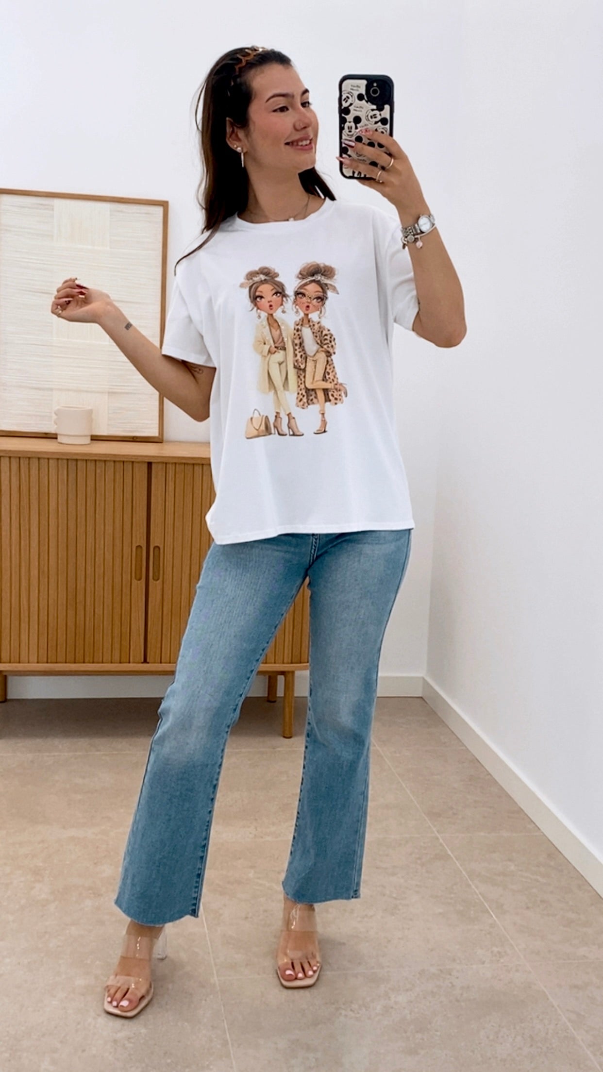 Camiseta versátil de talla única con diseño estampado sobre fondo liso. Confeccionada en una mezcla de 95% algodón y 5% elastan que proporciona comodidad y elasticidad. Manga corta y cuello redondo clásico, ideal para un uso diario. Perfecta para cualquier ocasión, combina funcionalidad y estilo en una prenda cómoda y duradera.