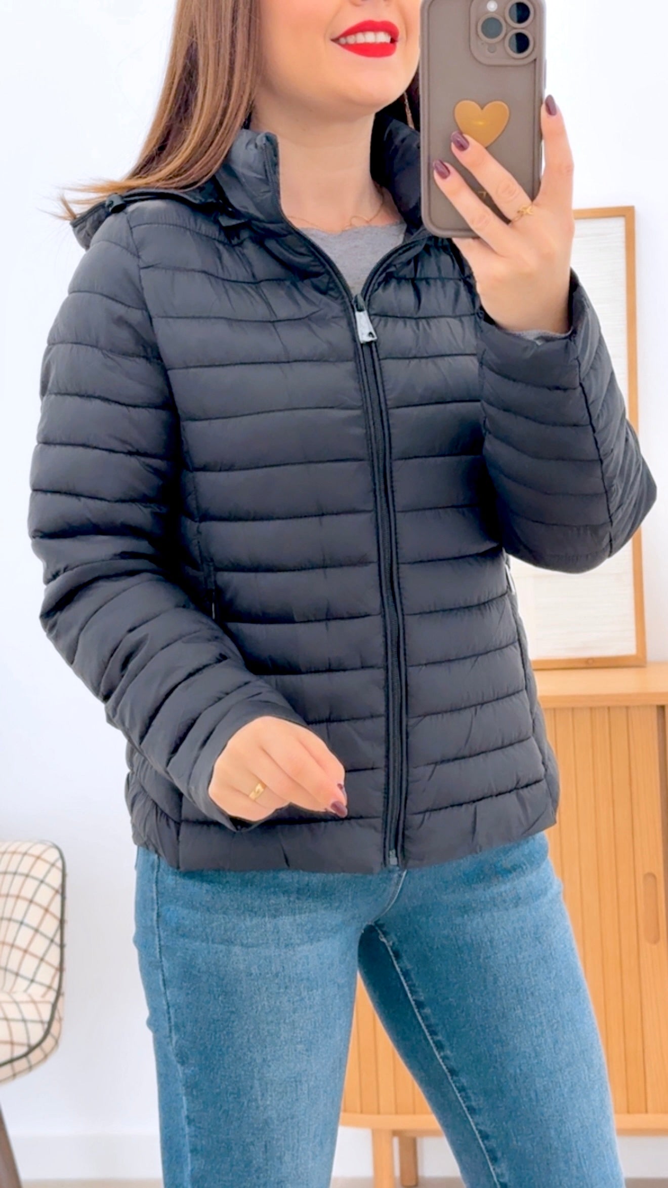 CHAQUETA ACOLCHADA CINTHIA: diseño versátil para la transición de estaciones. Confeccionada en 100% poliéster, ofrece aislamiento térmico sin exceso de peso. Cuenta con bolsillos laterales funcionales para mayor practicidad y capucha ajustable que se adapta a diferentes condiciones climáticas. Disponible en tallas desde la S hasta la XXXL, con corte ajustable que permite personalizar el fit según tus preferencias. Acabado en color liso que combina fácilmente con cualquier look.