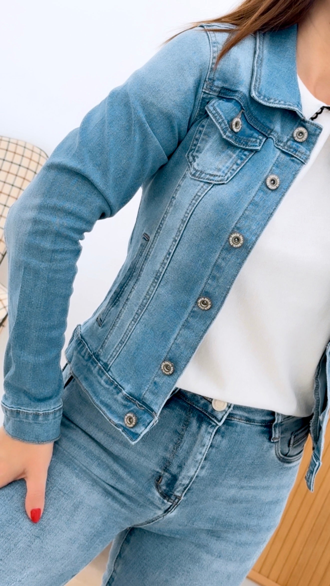 La chaqueta básica denim kyl ofrece tallas desde la S hasta la XXL, asegurando un ajuste para diversos tipos de cuerpo. Cuenta con un cuello solapado que aporta un estilo clásico y una abotonadura frontal que facilita su uso y proporciona un acabado estructurado. Ideal para quienes buscan combinar versatilidad con un diseño atemporal y funcionalidad en su vestuario diario.
