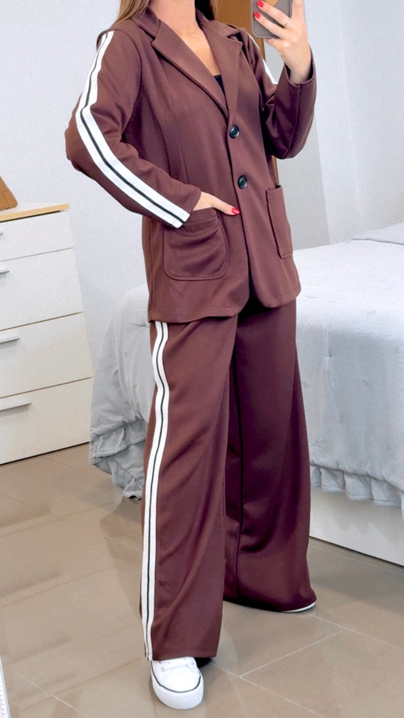 Este conjunto ADY combina una americana y pantalón confeccionados en una mezcla de tejidos que aporta comodidad y estilo. La americana, con cierre de botón, ofrece un acabado elegante, mientras que el pantalón con cintura engomada garantiza un ajuste flexible. Los detalles de línea lateral en diferente tejido añaden un toque moderno y sofisticado. Disponible en talla única, está fabricado con un 52% poliéster, 40% viscosa y 8% elastán, proporcionando durabilidad y adaptabilidad para un uso diario con un look profesional.
