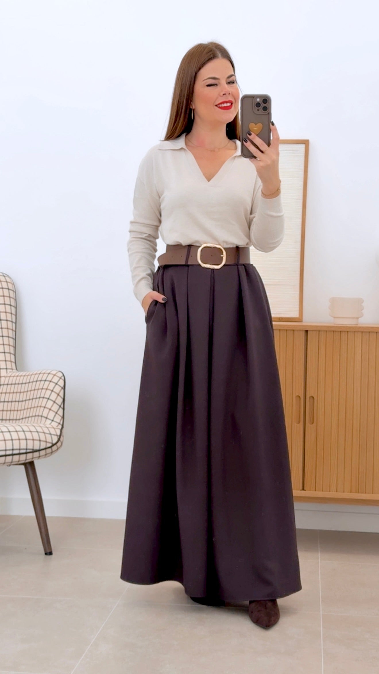 FALDA CINFA en talla única con diseño versátil de color liso. Confeccionada en una mezcla de 95% poliéster y 5% elastán que proporciona comodidad y flexibilidad en cada movimiento. Destaca por su cintura engomada que asegura un ajuste firme y cómodo durante todo el día. Incluye cinturón de polipiel que añade un toque sofisticado y permite personalizar el look según tus preferencias. Una prenda práctica y elegante para cualquier ocasión.