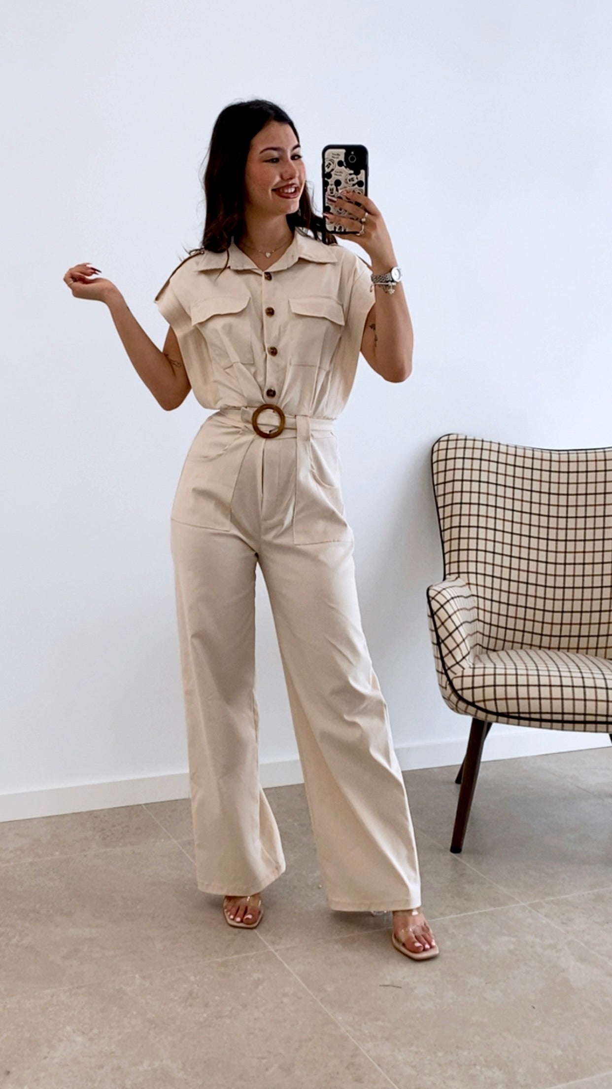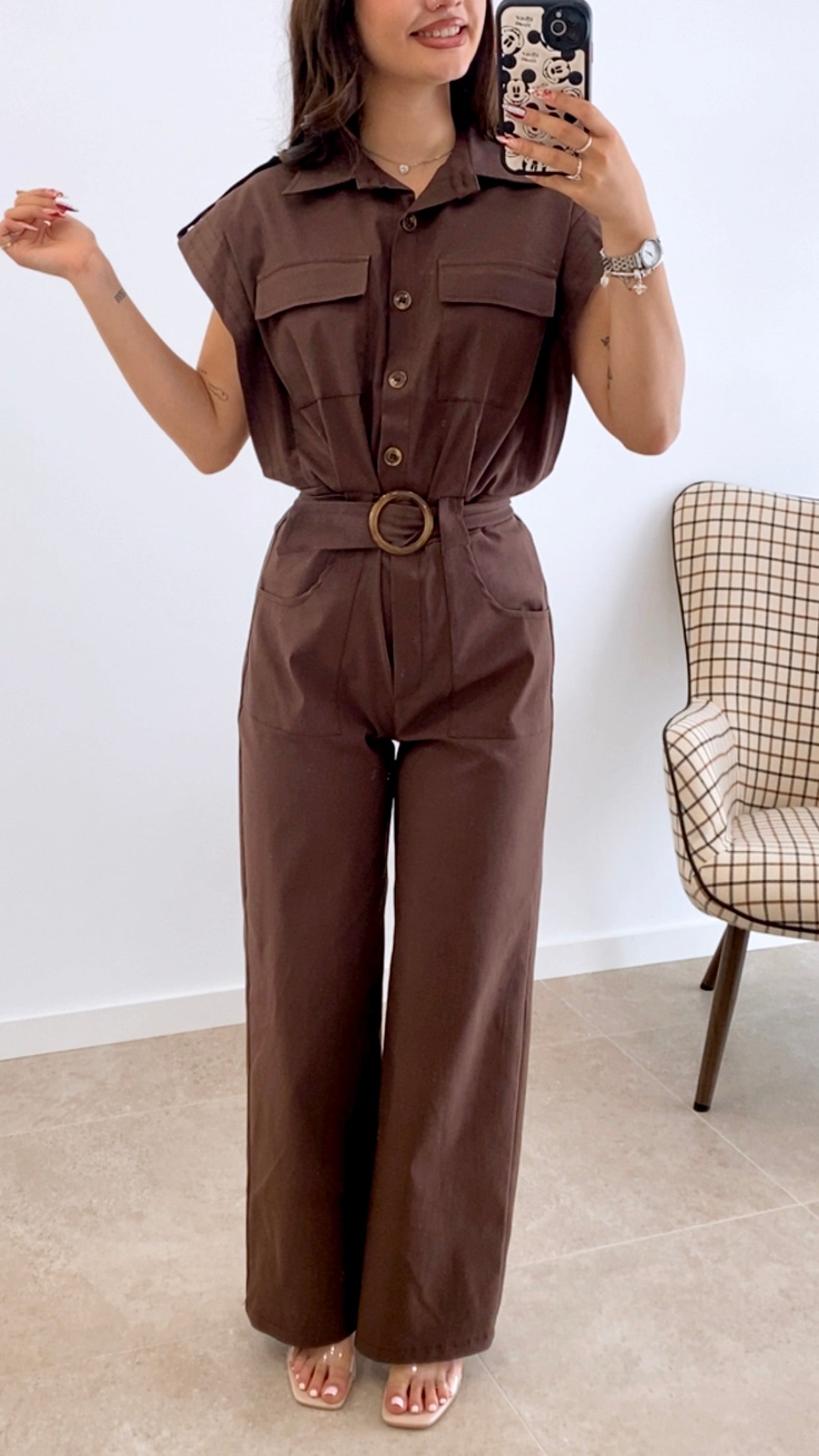 Mono largo confeccionado en una mezcla de 70% viscosa, 27% nylon y 3% elastano que garantiza comodidad y elasticidad. Diseño de color liso con cierre de botones y cinturón a juego del mismo material para definir la silueta. Incluye bolsillos funcionales y se adapta a talla única. Prenda versátil perfecta para ocasiones casuales o más formales.
