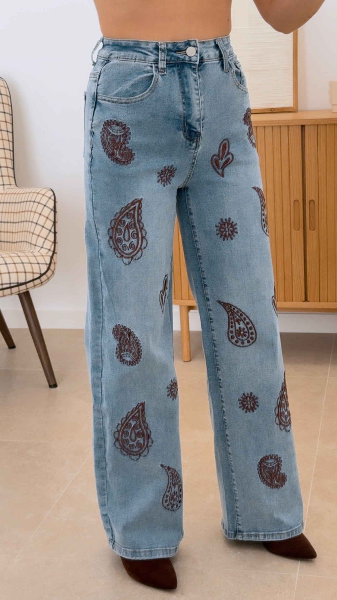 Pantalón confeccionado en una mezcla de 98% algodón y 2% elastano que proporciona comodidad y flexibilidad en cada movimiento. Disponible en tallas de la S a la XL, cuenta con un efecto push up que realza la silueta. El diseño paisley estampado añade un toque sofisticado y versátil a tu guardarropa. Una prenda de calidad que combina estilo y funcionalidad para el día a día.