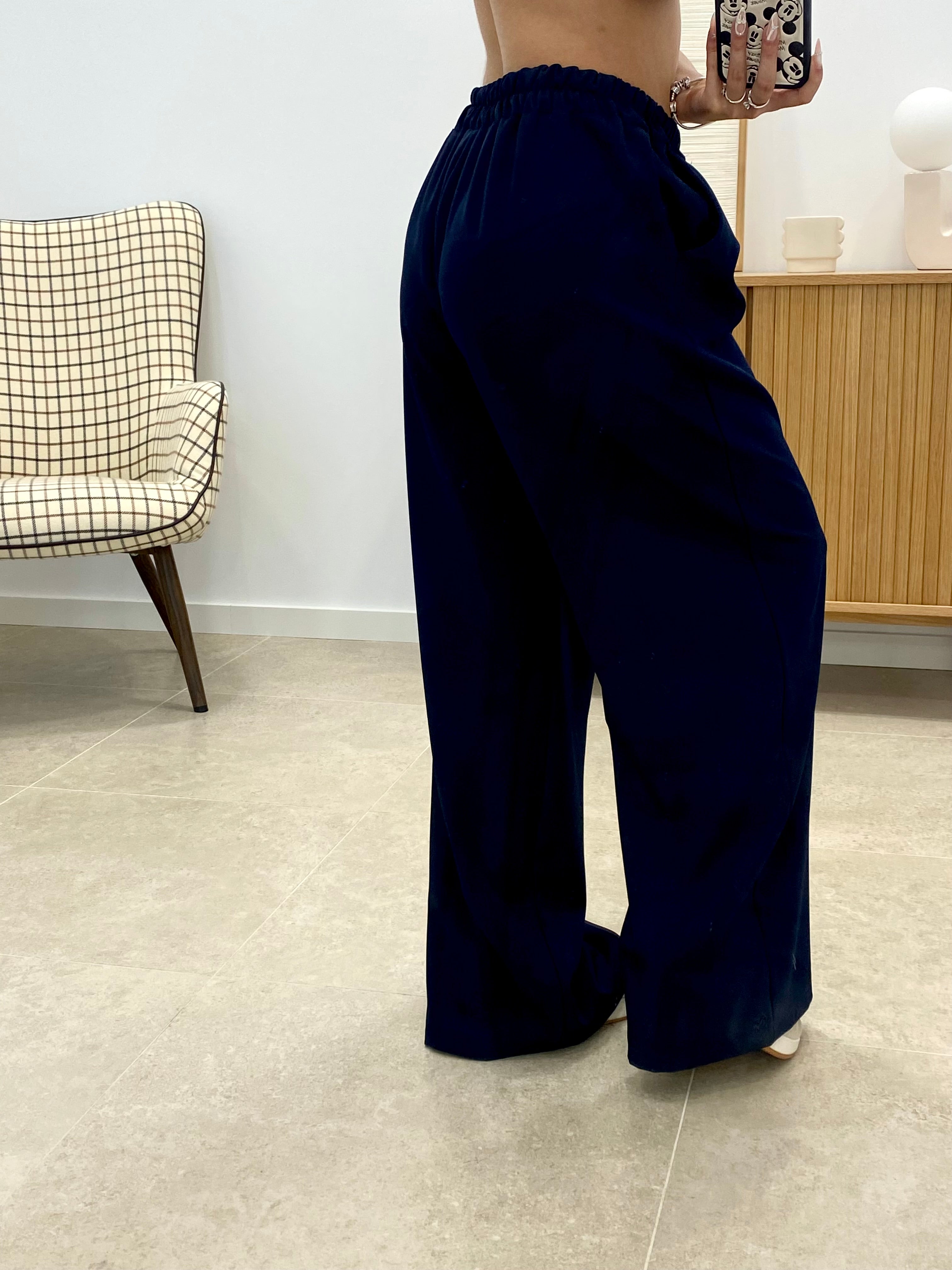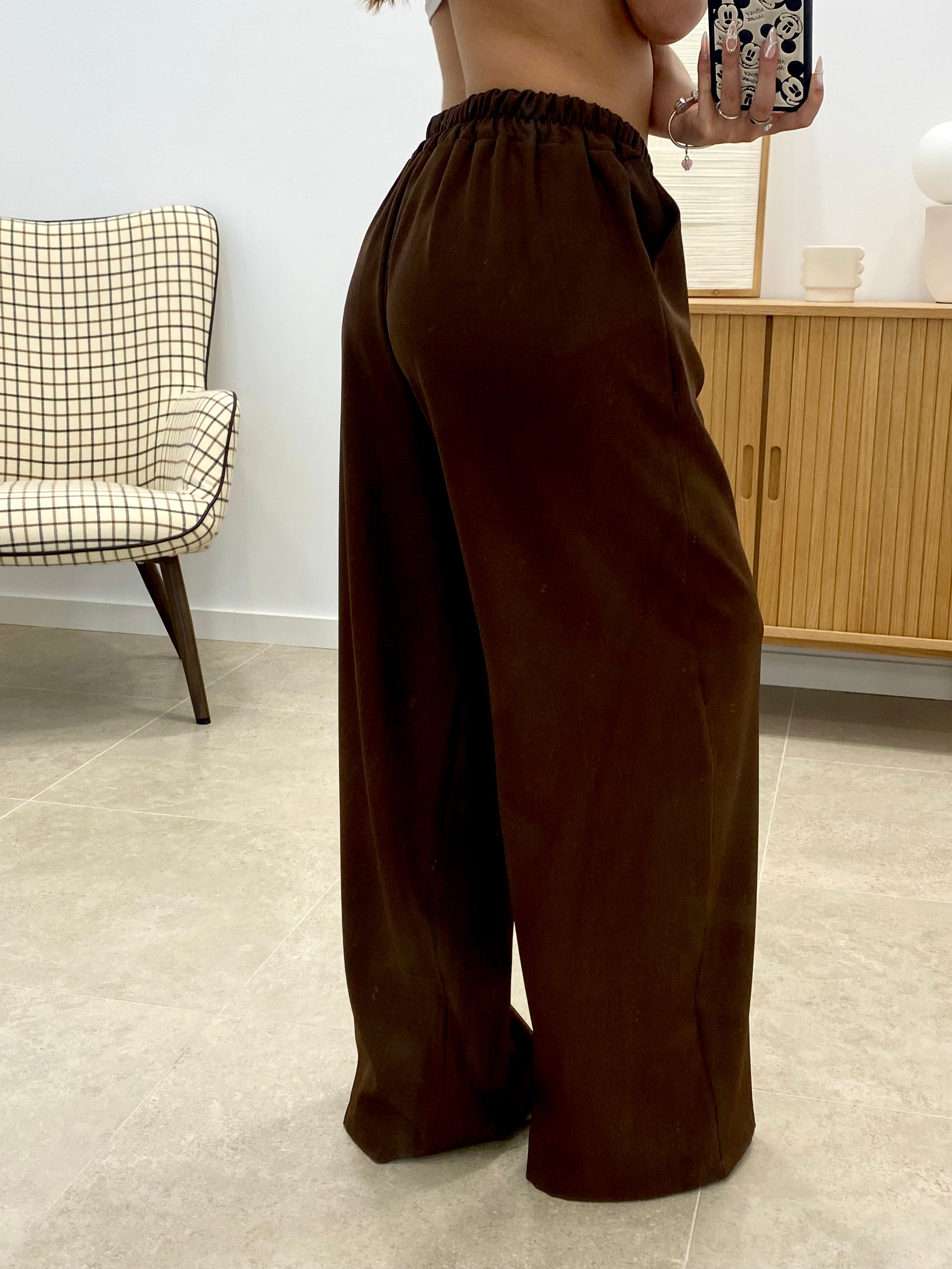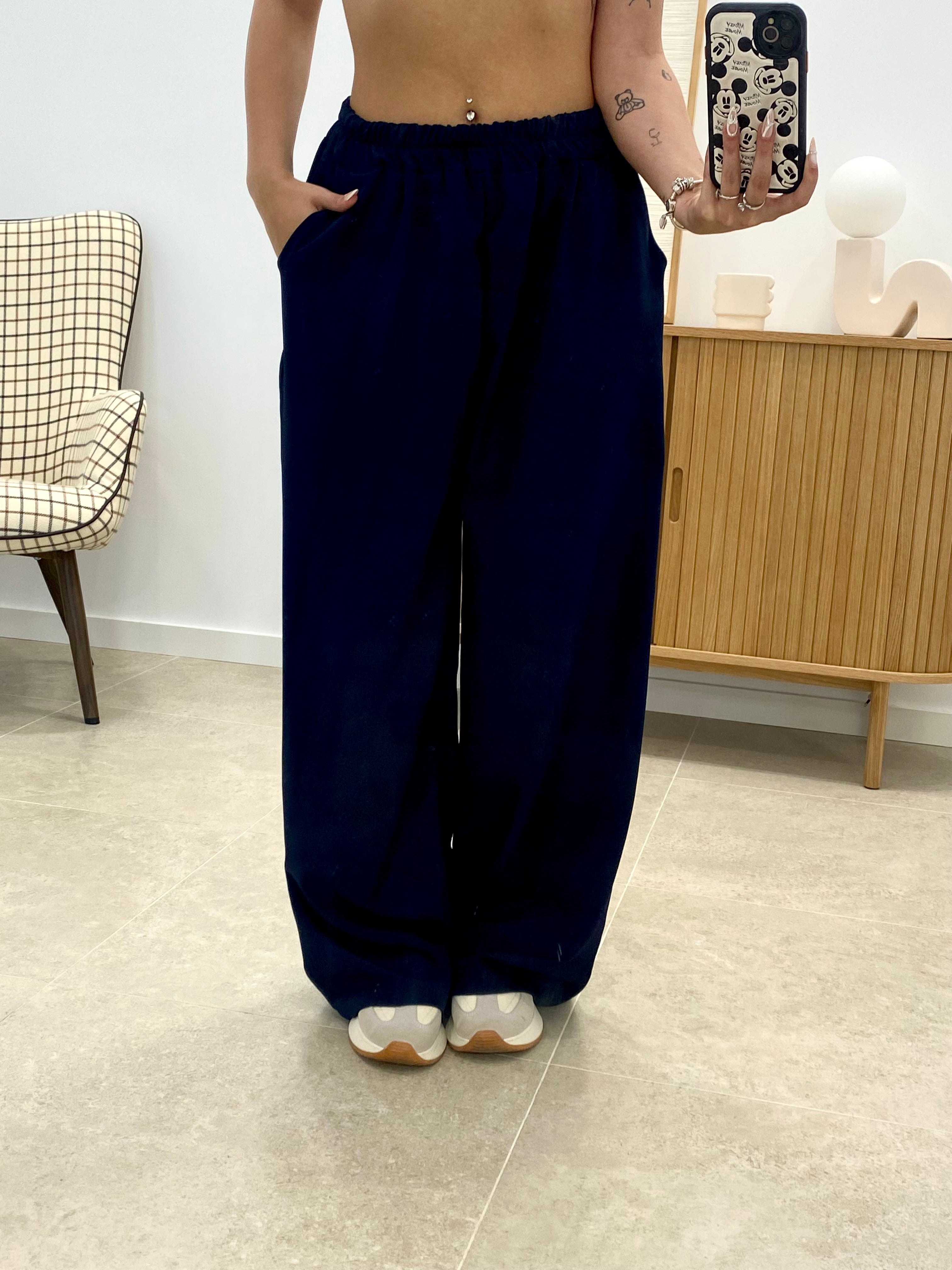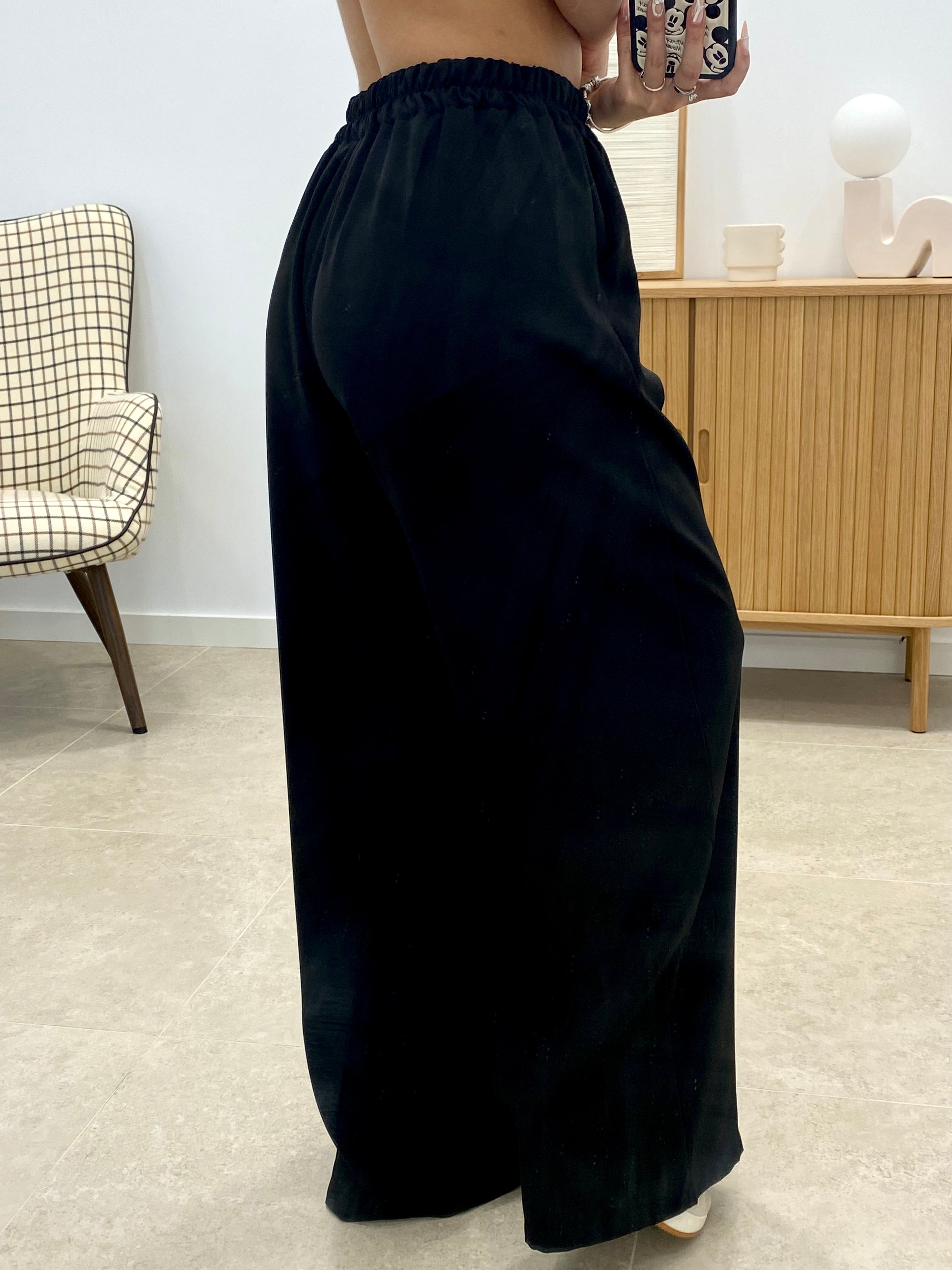 Pantalón de corte ancho confeccionado en 100% poliéster de alta calidad. Diseño versátil con talla única que se adapta a diferentes morfologías gracias a su cintura engomada ajustable. Cuenta con bolsillos funcionales para mayor practicidad. Acabado en color liso que facilita su combinación con cualquier prenda de tu armario. Ideal para un uso cotidiano cómodo y desenfadado.