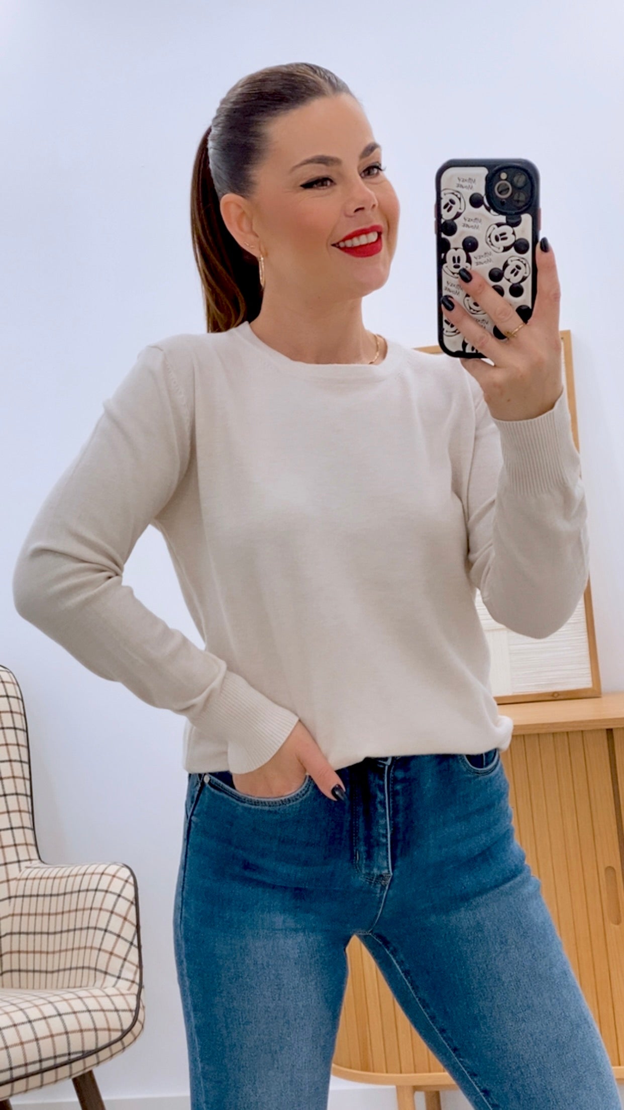COLOR LISO, CUELLO REDONDO. TALLA ÚNICA, 60% VISCOSA, 28% POLIESTER Y 22% NYLON.
