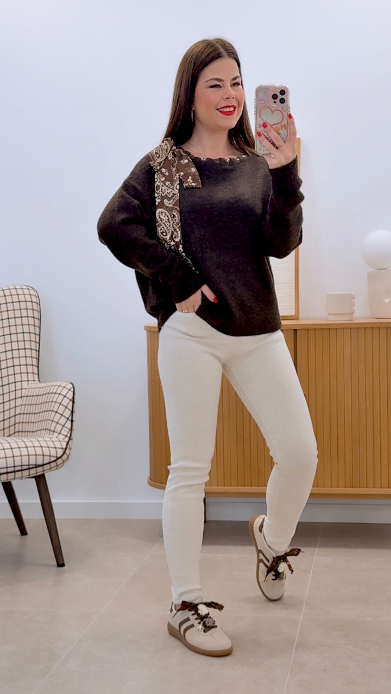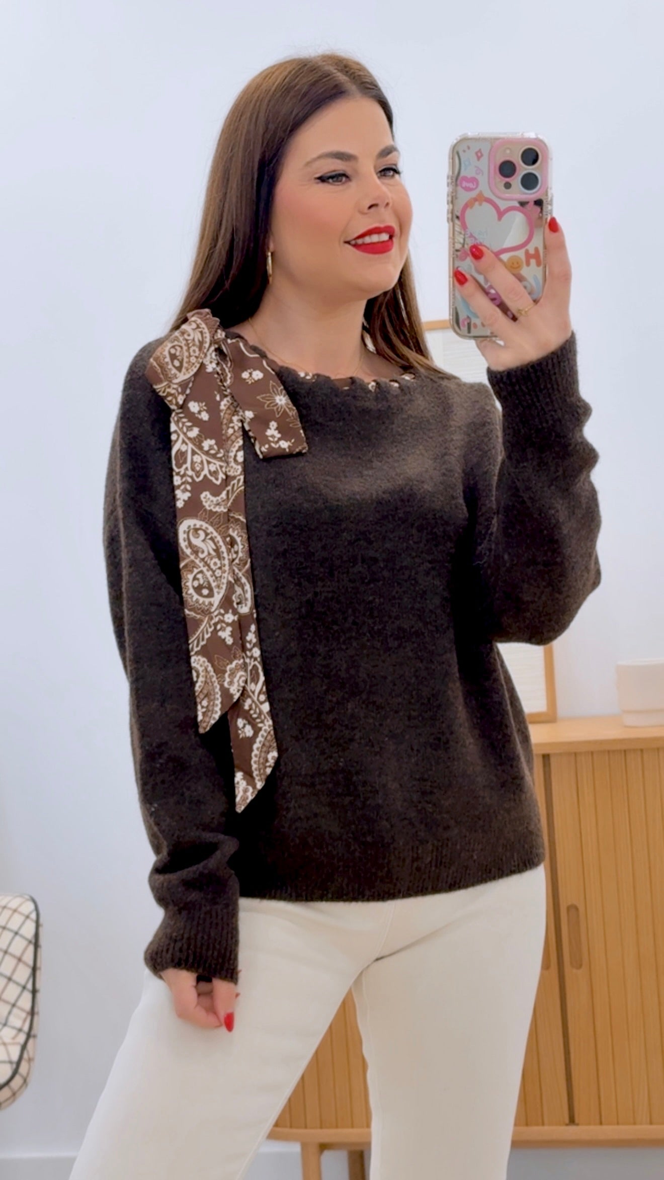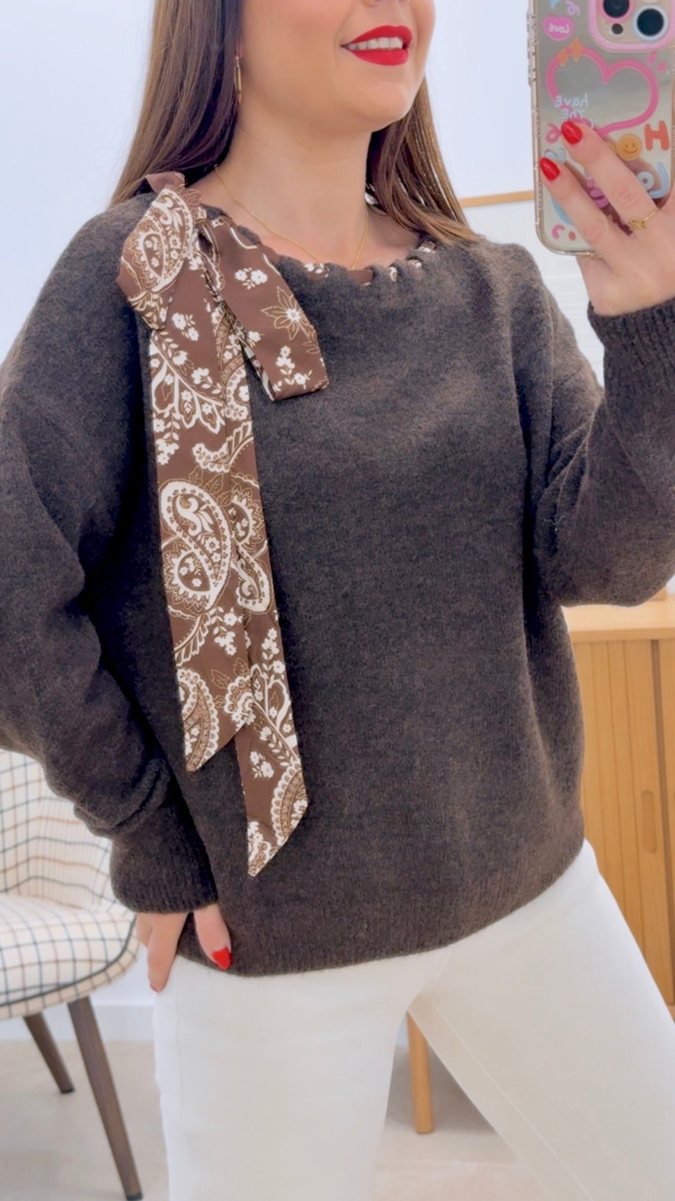 Suéter versátil confeccionado en una mezcla de materiales de alta calidad: 50% poliéster, 45% poliamida y 5% spandex, que garantiza durabilidad, comodidad y elasticidad. Disponible en talla única, se adapta a diferentes siluetas. Su distintivo detalle decorativo con pañuelo estampado añade un toque sofisticado y diferenciador al diseño. Prenda ideal para crear looks modernos y elegantes en cualquier ocasión.