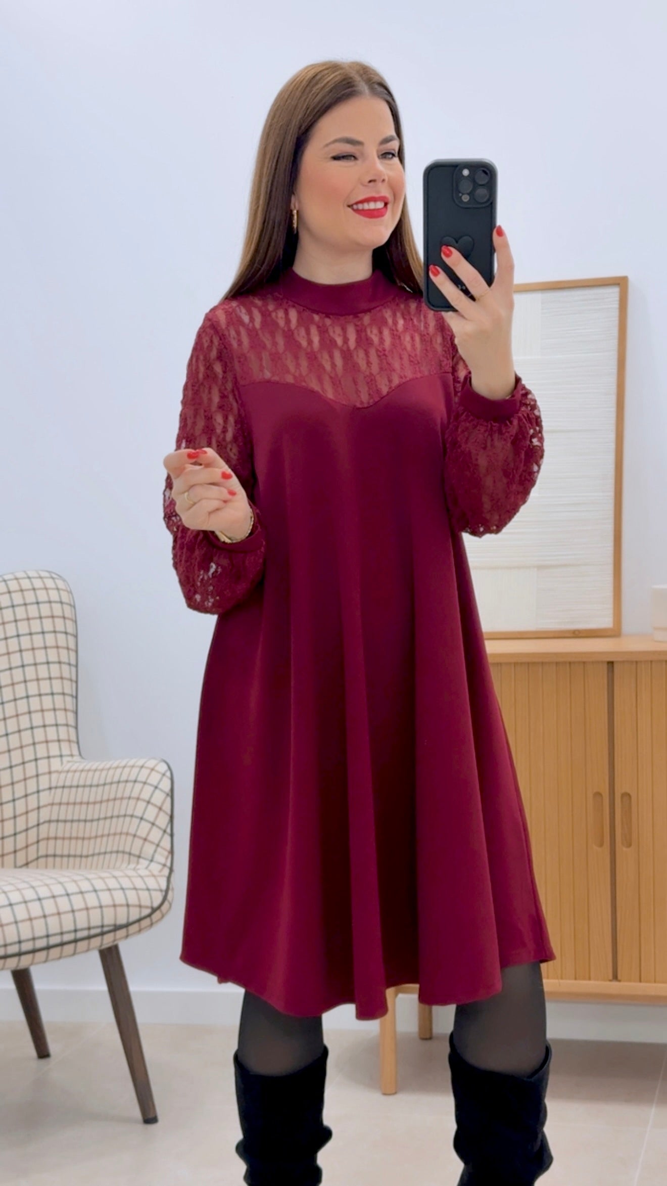 VESTIDO FLOTRA en talla única que combina elegancia y comodidad. Confeccionado con un 95% poliéster y 5% elastan, ofrece una excelente elasticidad y durabilidad. Destaca por sus mangas y parte superior transparentes, creando un efecto visual sofisticado que permite jugar con capas. La composición de la tela garantiza un mantenimiento sencillo y una prenda versátil para diferentes ocasiones.