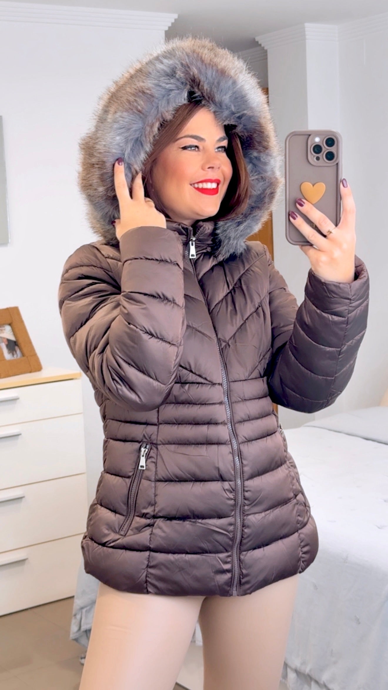 La chaqueta Fabiola combina funcionalidad y estilo, confeccionada en 100% poliéster para ofrecer resistencia y comodidad. Cuenta con bolsillos con cremallera y cierre frontal también con cremallera para mayor seguridad. Su capucha y el pelito que lleva, ambos extraíbles, permiten adaptarla según la temperatura y ocasión. Disponible en tallas desde la S hasta la XXL, es una prenda versátil que aporta calidez sin sacrificar un diseño cuidado. Ideal para quienes buscan una chaqueta práctica y elegante. Forro interno de pelito.