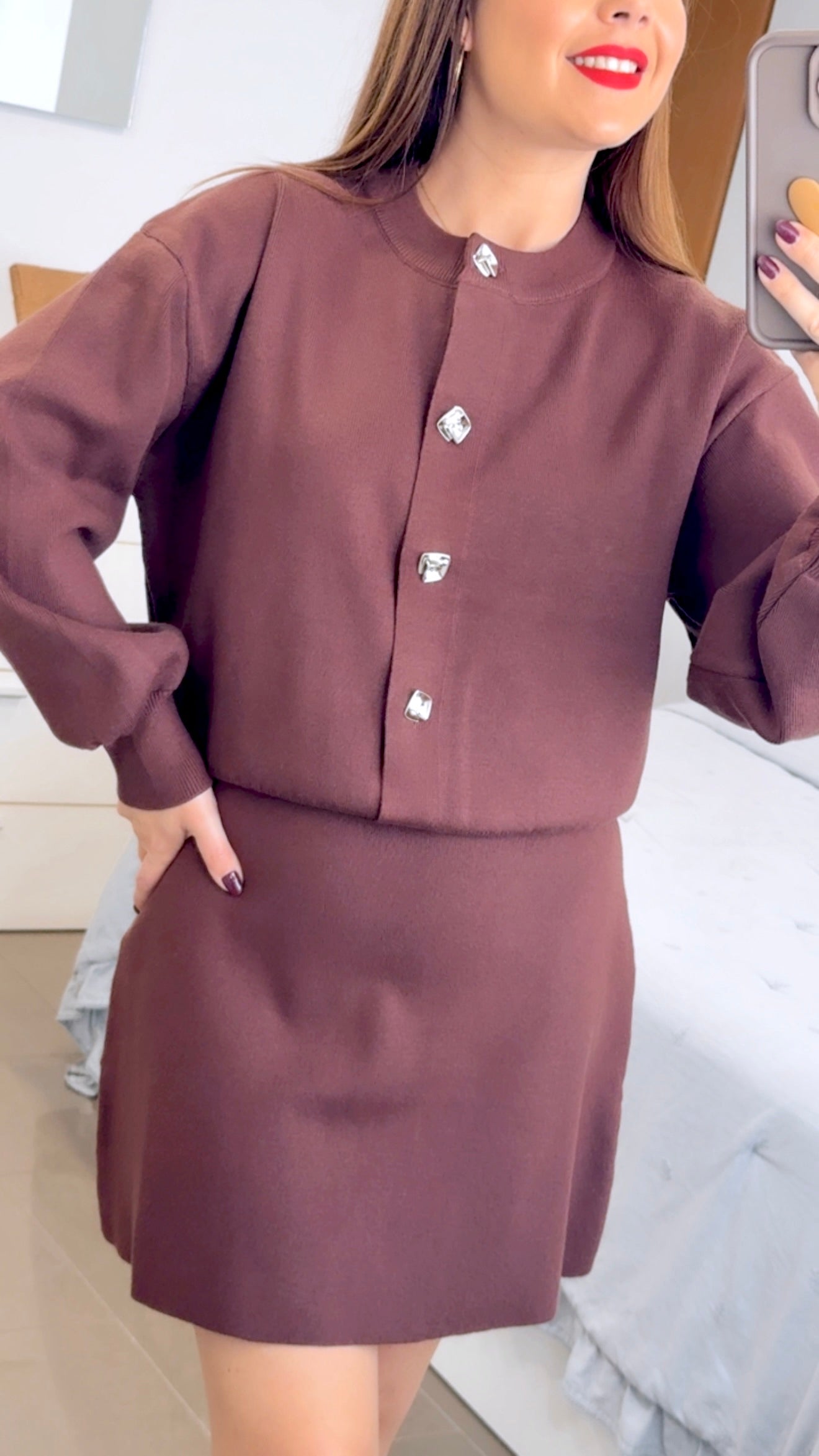 El conjunto Flopla combina una rebeca y una falda de punto confeccionadas con una mezcla premium de 45% viscosa, 28% poliamida y 27% poliéster, que garantiza confort, elasticidad y durabilidad. Disponible en tallas S/M y L/XL, ofrece un ajuste versátil y favorecedor. Ideal para un estilo sofisticado y cómodo, este conjunto es perfecto para diversas ocasiones, aportando una textura suave y resistente que mantiene su forma con el uso prolongado.