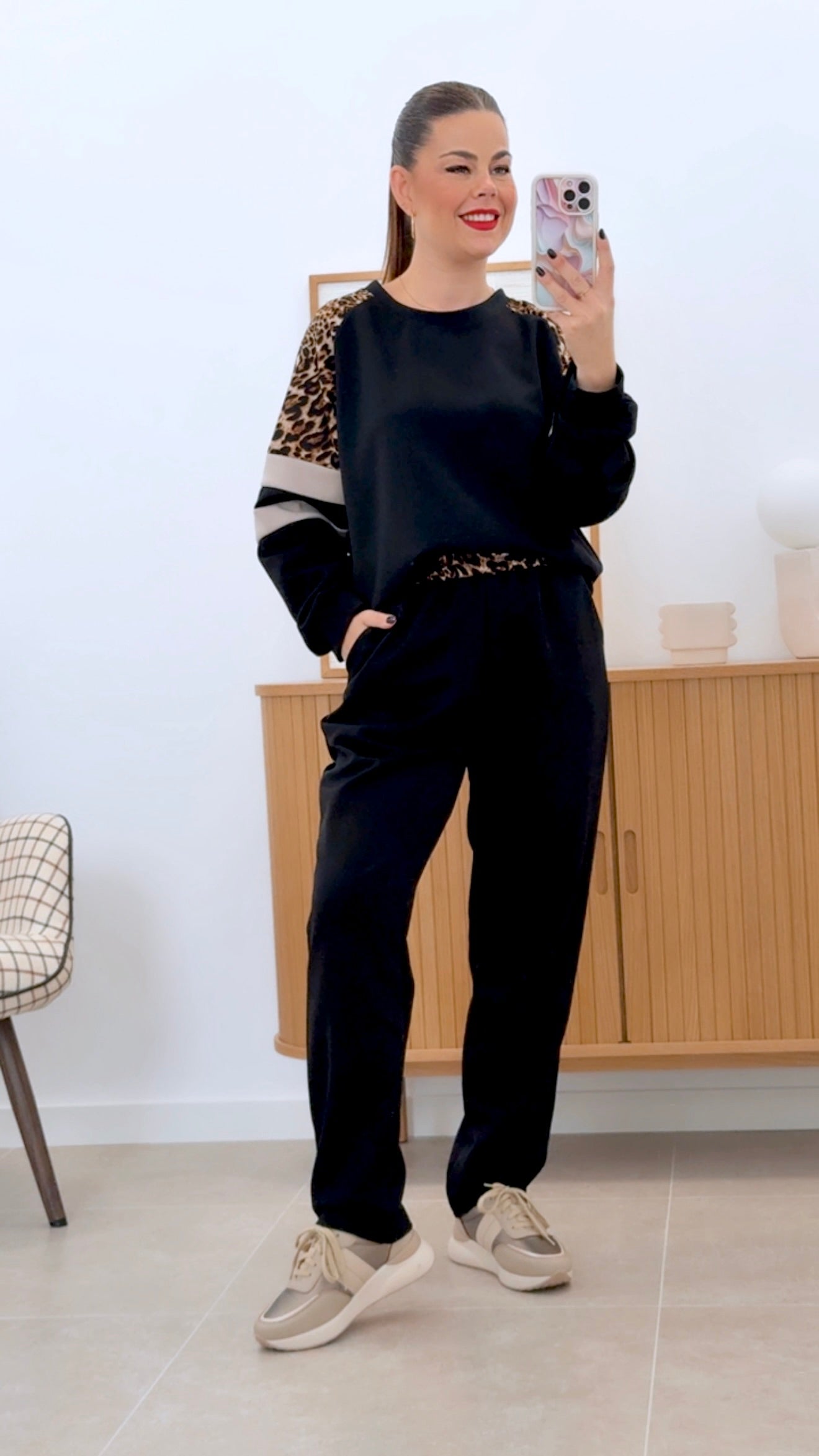 Este conjunto incluye un pantalón con cintura engomada y prácticos bolsillos, junto con una camiseta oversize de cuello redondo. Fabricado en una mezcla de 55% poliéster, 39% viscosa y 6% elastán, ofrece comodidad, elasticidad y un ajuste versátil en talla única. Su diseño de color liso facilita la combinación con otras prendas, ideal para quienes buscan estilo y funcionalidad en su día a día.