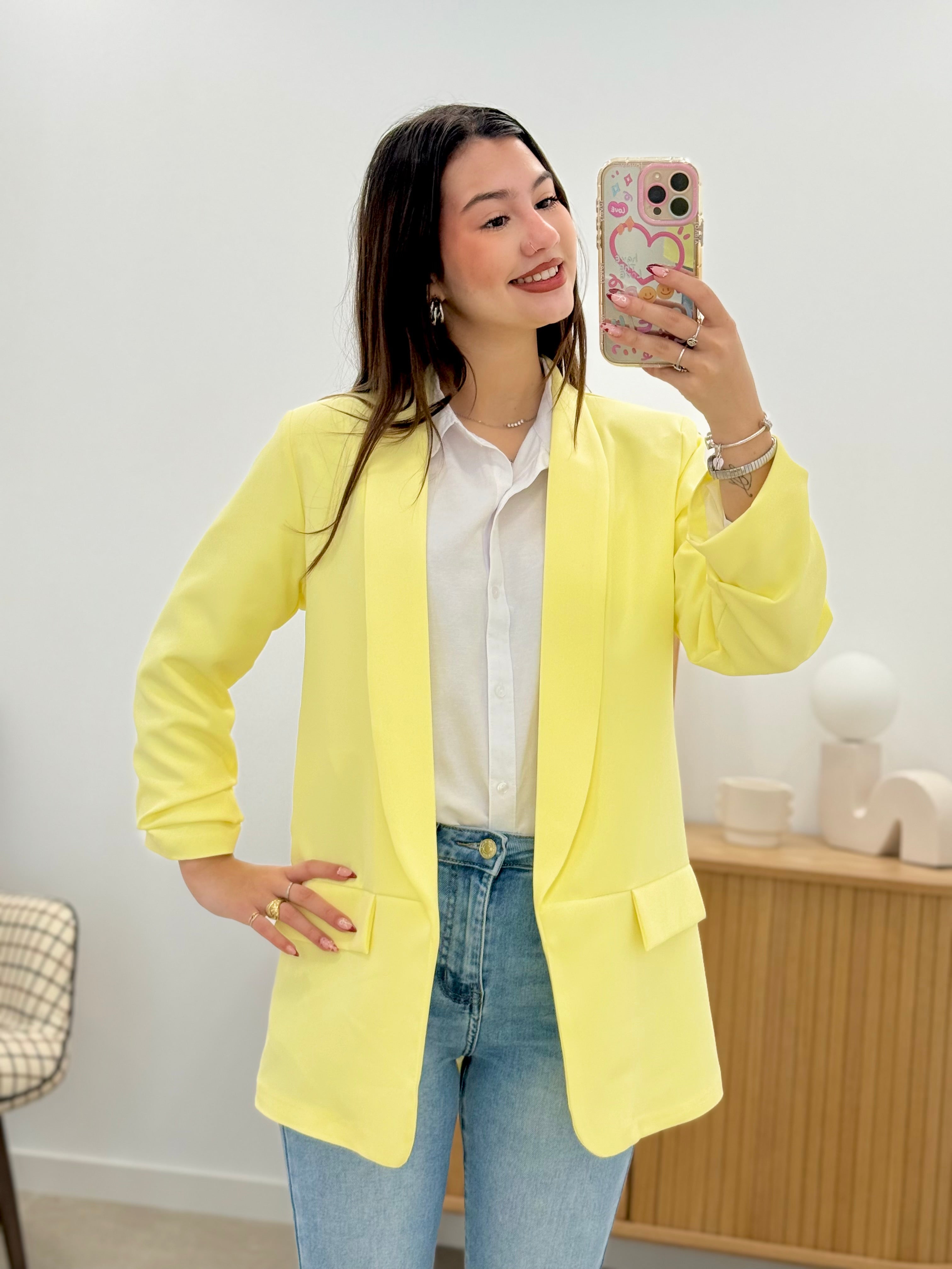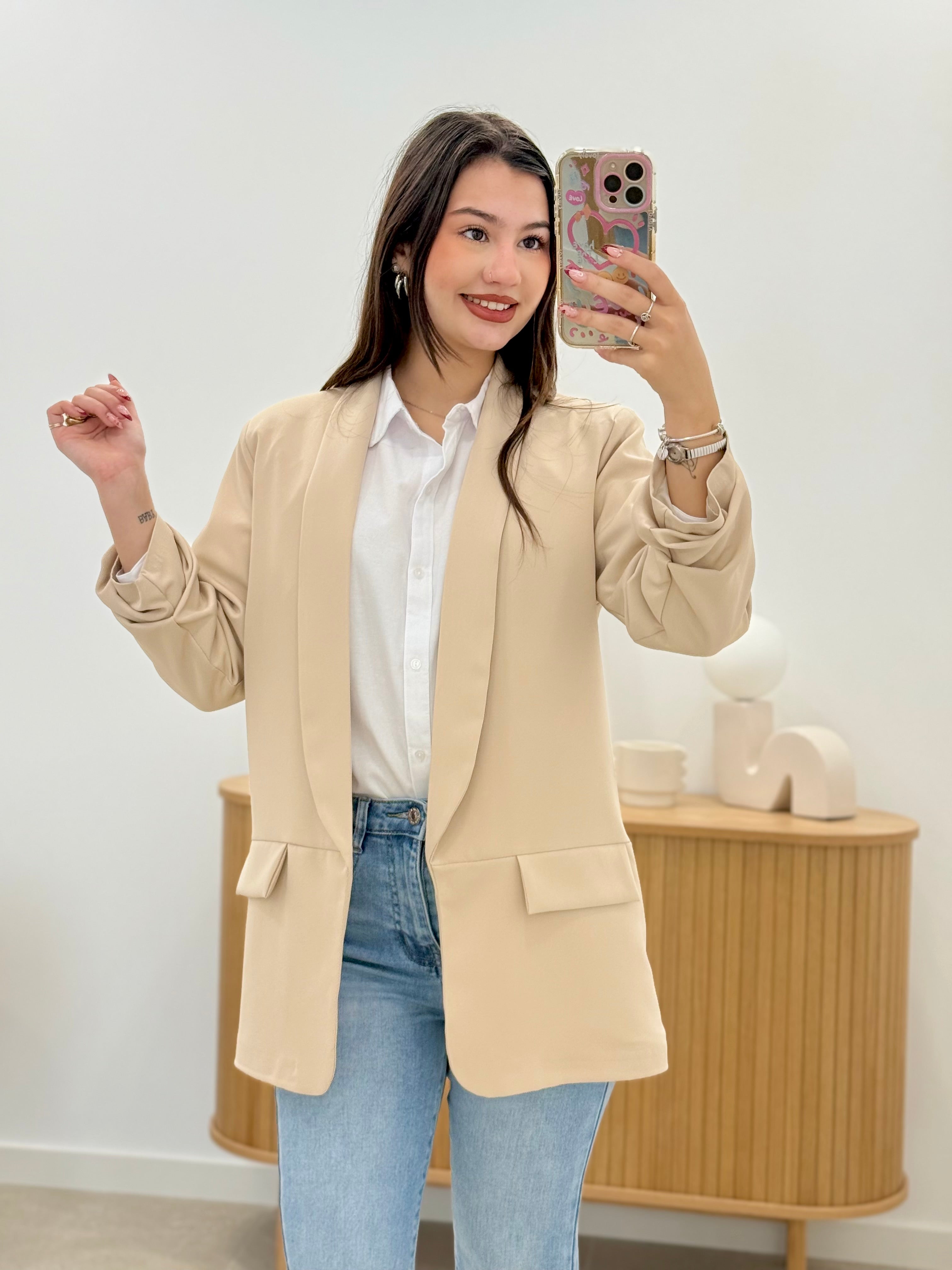 Integrieren Sie formellen Stil in Ihre Garderobe mit dem GABRIELA GRANDE BLAZER. Diese Jacke hat lange Ärmel und einen Reverskragen mit Details an zwei unteren Klappen, die Taschen simulieren. Die Ärmel sind an den Manschetten leicht gerafft und diese Jacke ist in einfarbigen Farben erhältlich. Es besteht aus 95 % Polyester und 5 % Elastik, in Einheitsgröße und empfohlenen Maßen. Ein widerstandsfähiges und klassisches Stück, perfekt für jeden Look.