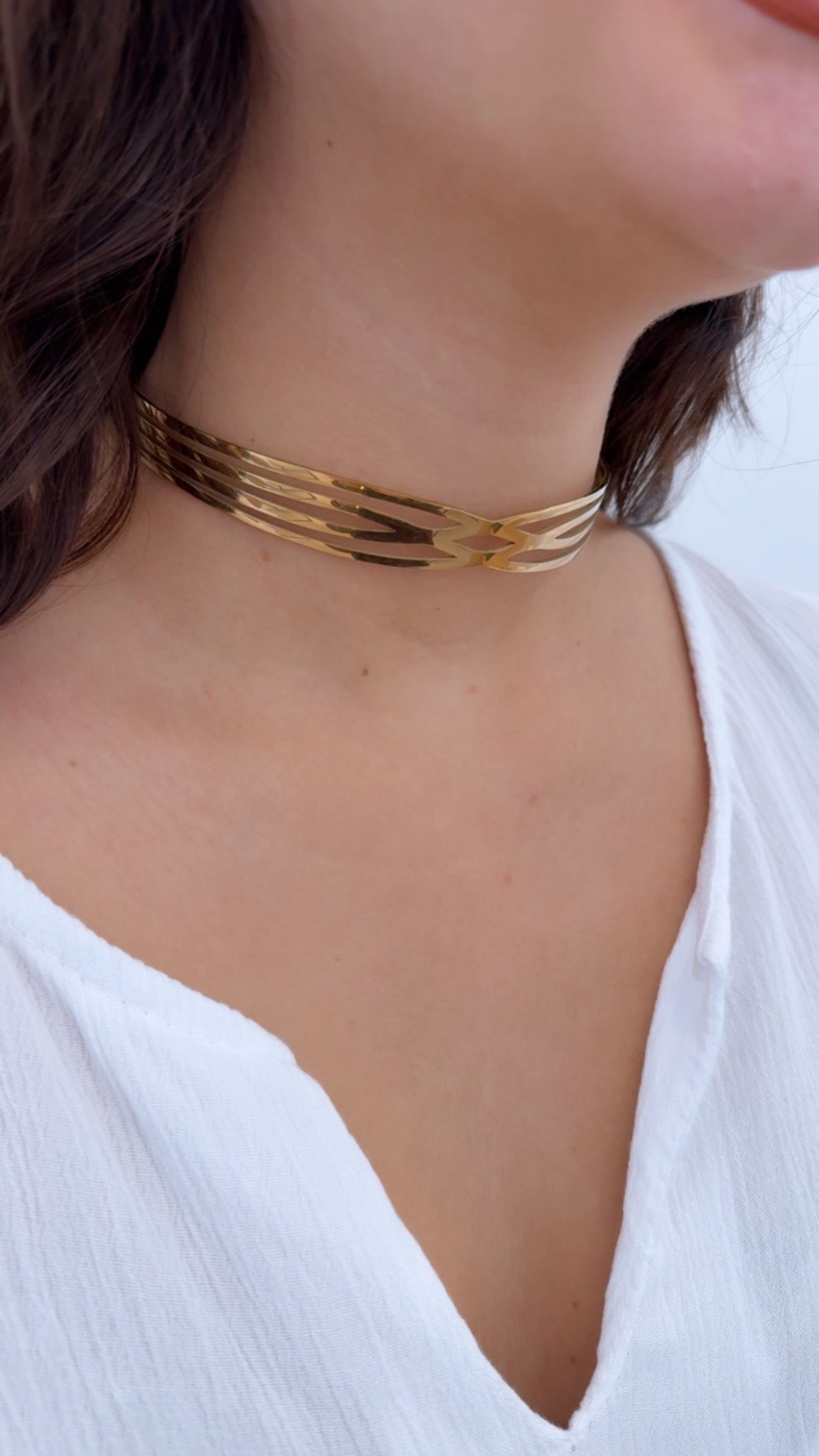 Choker de acero inoxidable con acabado dorado que ofrece resistencia y durabilidad excepcionales. Diseño ajustable que se adapta a diferentes medidas de cuello para garantizar comodidad óptima. Presenta un patrón decorativo distintivo que añade carácter y personalidad a cualquier conjunto. Su tonalidad dorada proporciona un toque de lujo accesible, perfecto para quienes buscan accesorios versátiles que transicionen sin esfuerzo entre ocasiones cotidianas y especiales.