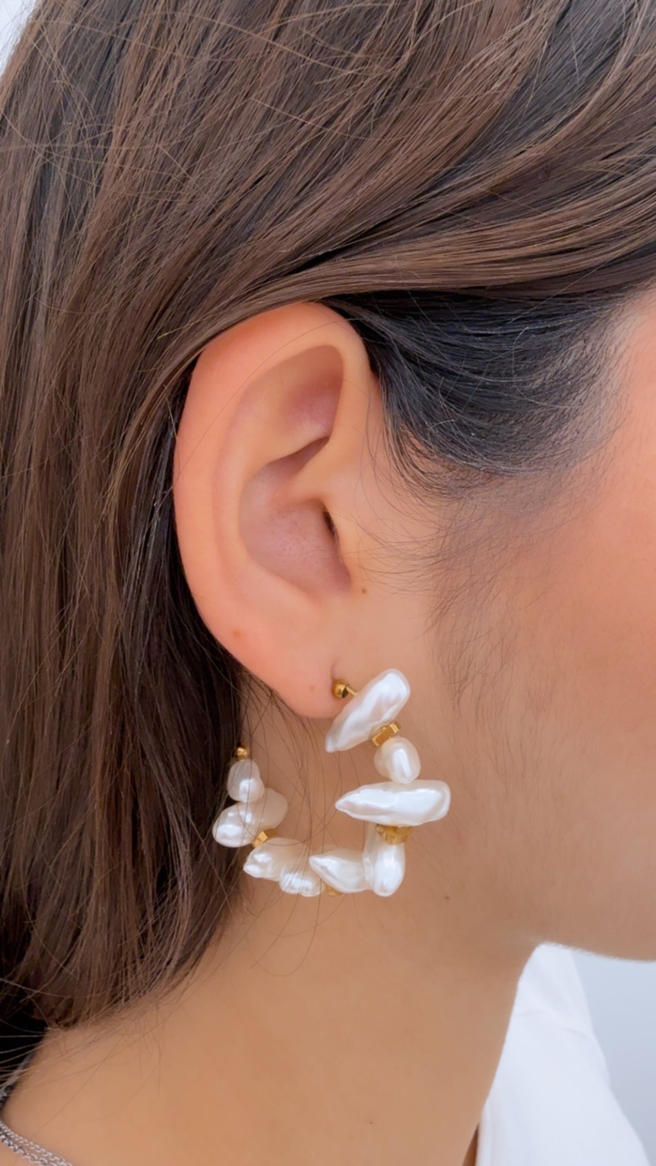 Pendiente semiaro que fusiona la calidez del dorado con la elegancia del blanco perlado. Este diseño combina dos tonalidades complementarias para crear una pieza versátil que se adapta a cualquier ocasión. El acabado perlado aporta un brillo sutil y sofisticado, mientras que los detalles dorados añaden un toque de distinción. Ideal para quienes buscan joyería que equilibre modernidad y clasicismo en una sola prenda.