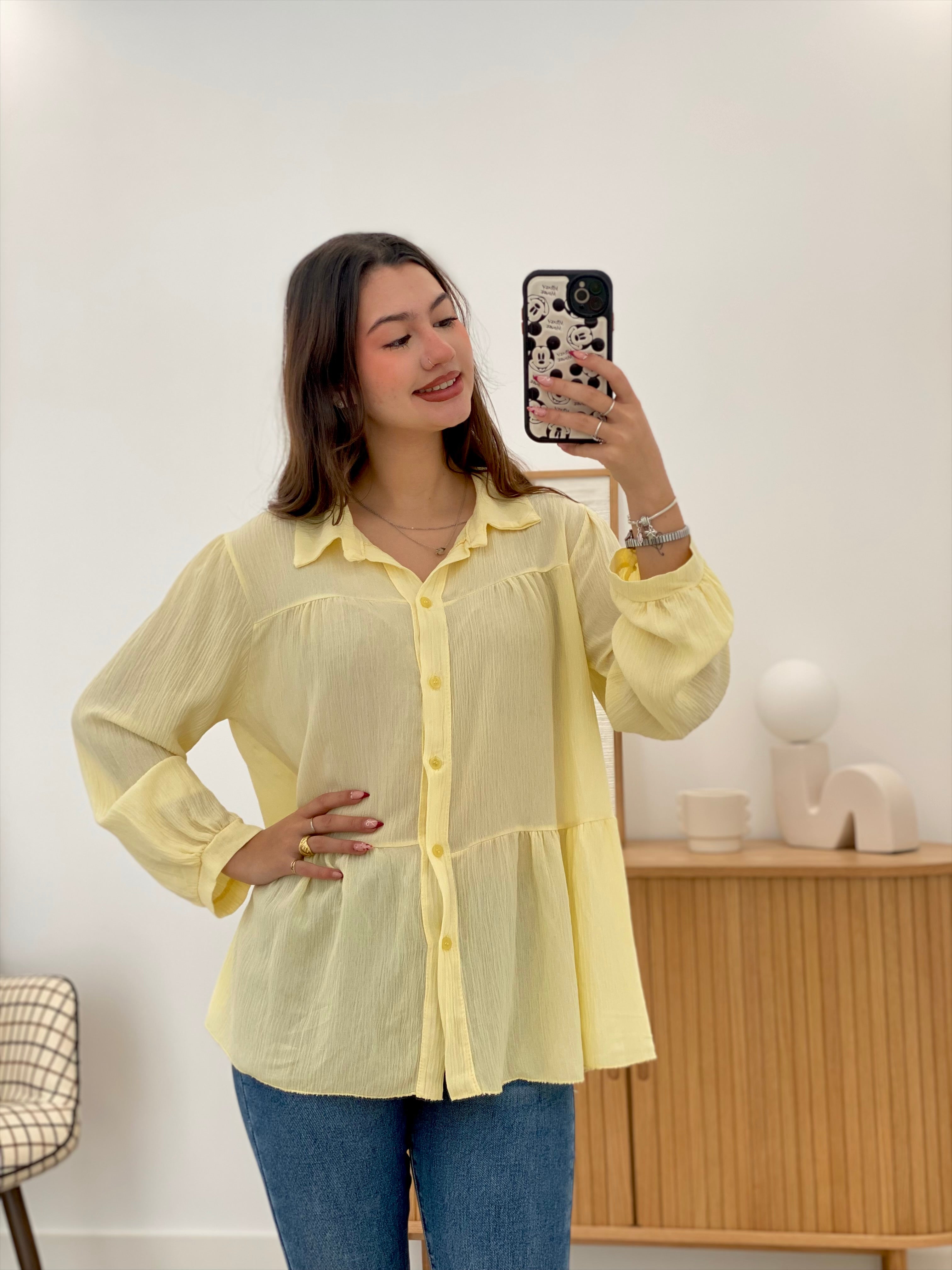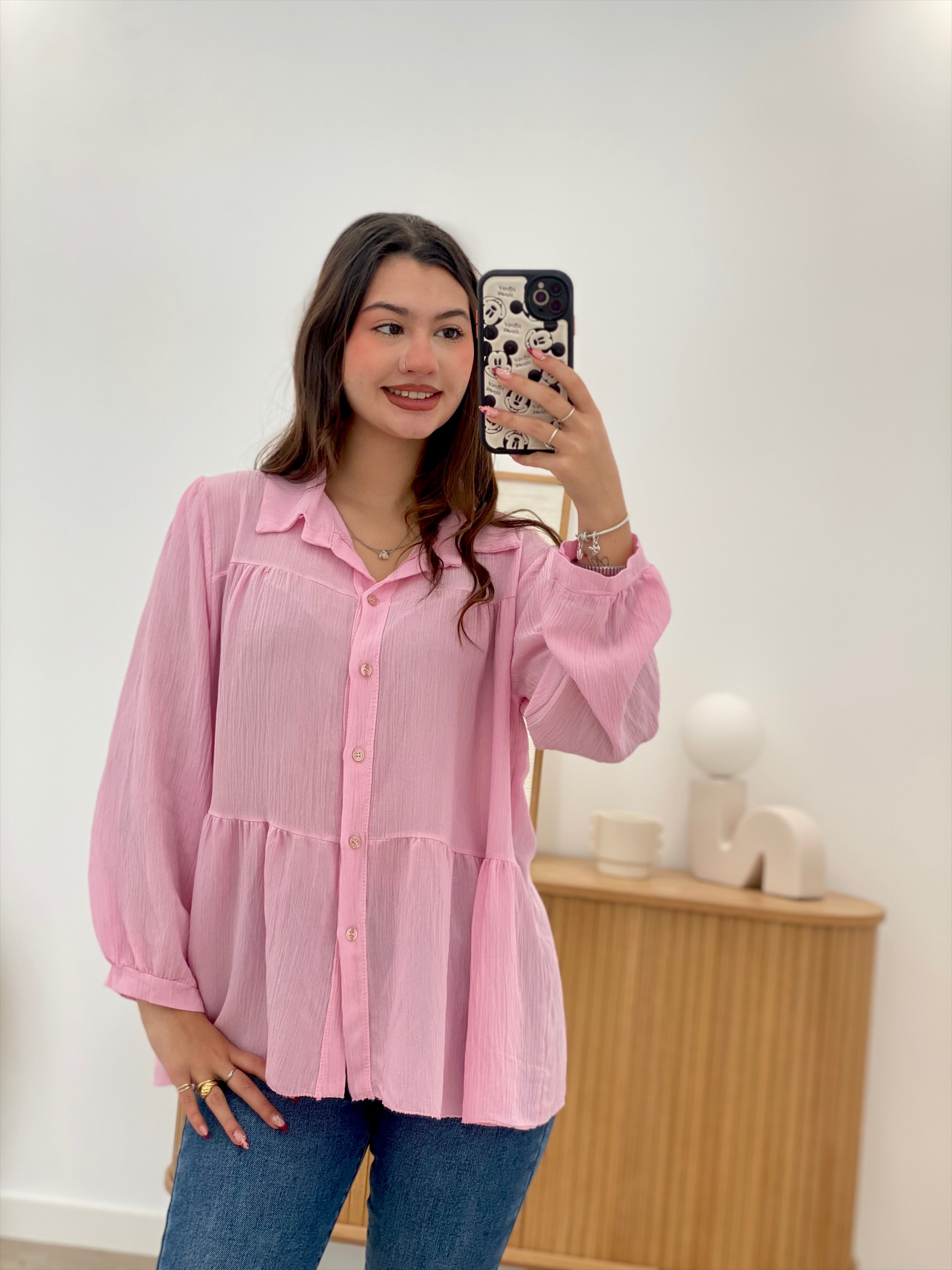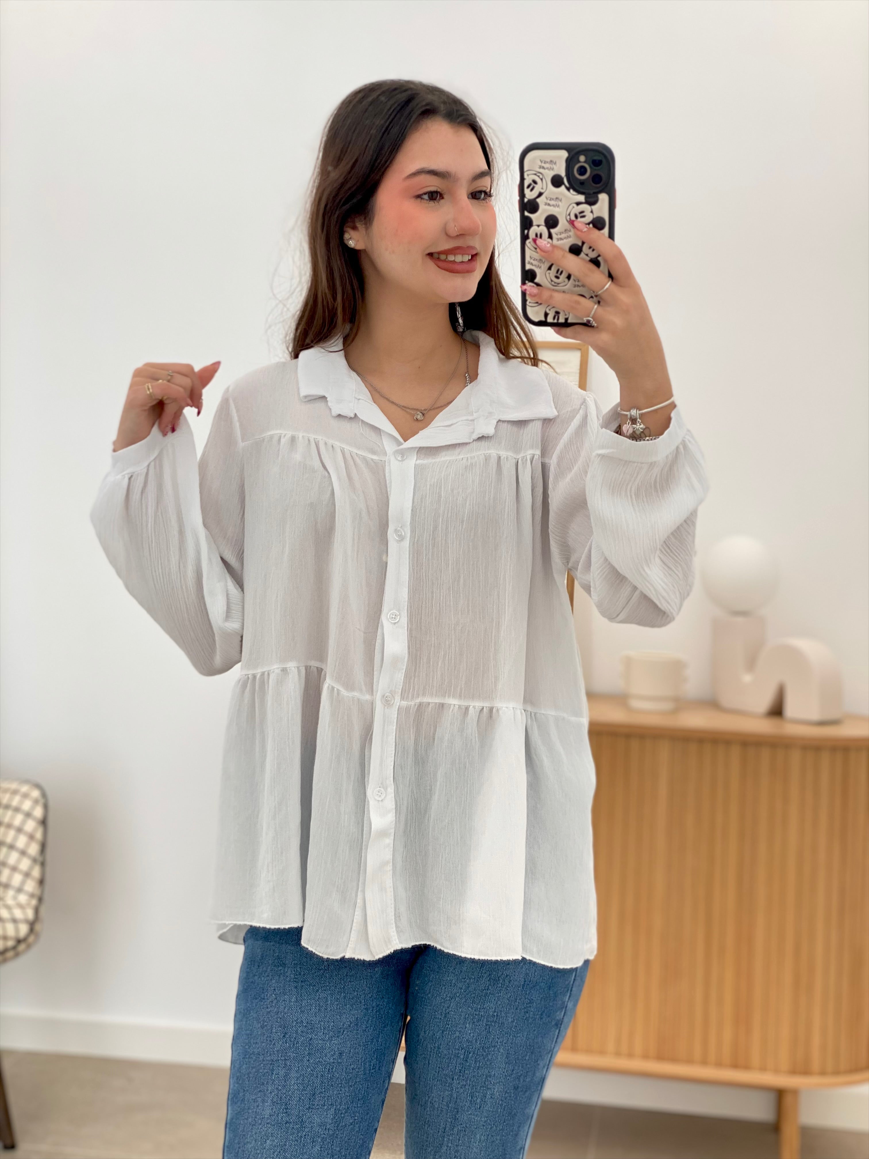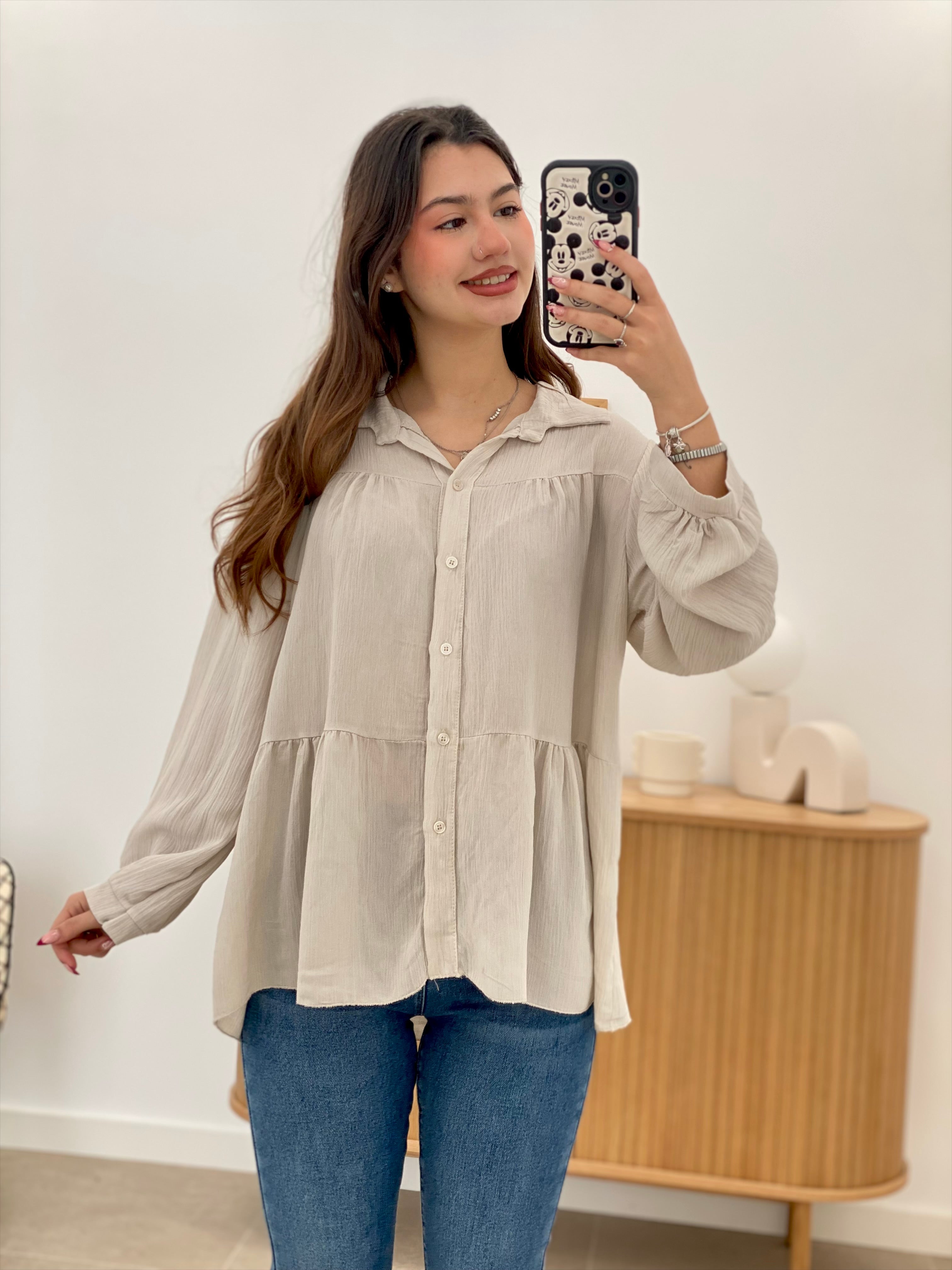 This Lar shirt, made from 100% viscose, is one size fits most and comfortably accommodates a variety of body types. Its subtle ruffles add a touch of feminine elegance without sacrificing sophistication. Ideal for those seeking a versatile and soft-to-the-touch garment, perfect for occasions that demand both style and comfort.