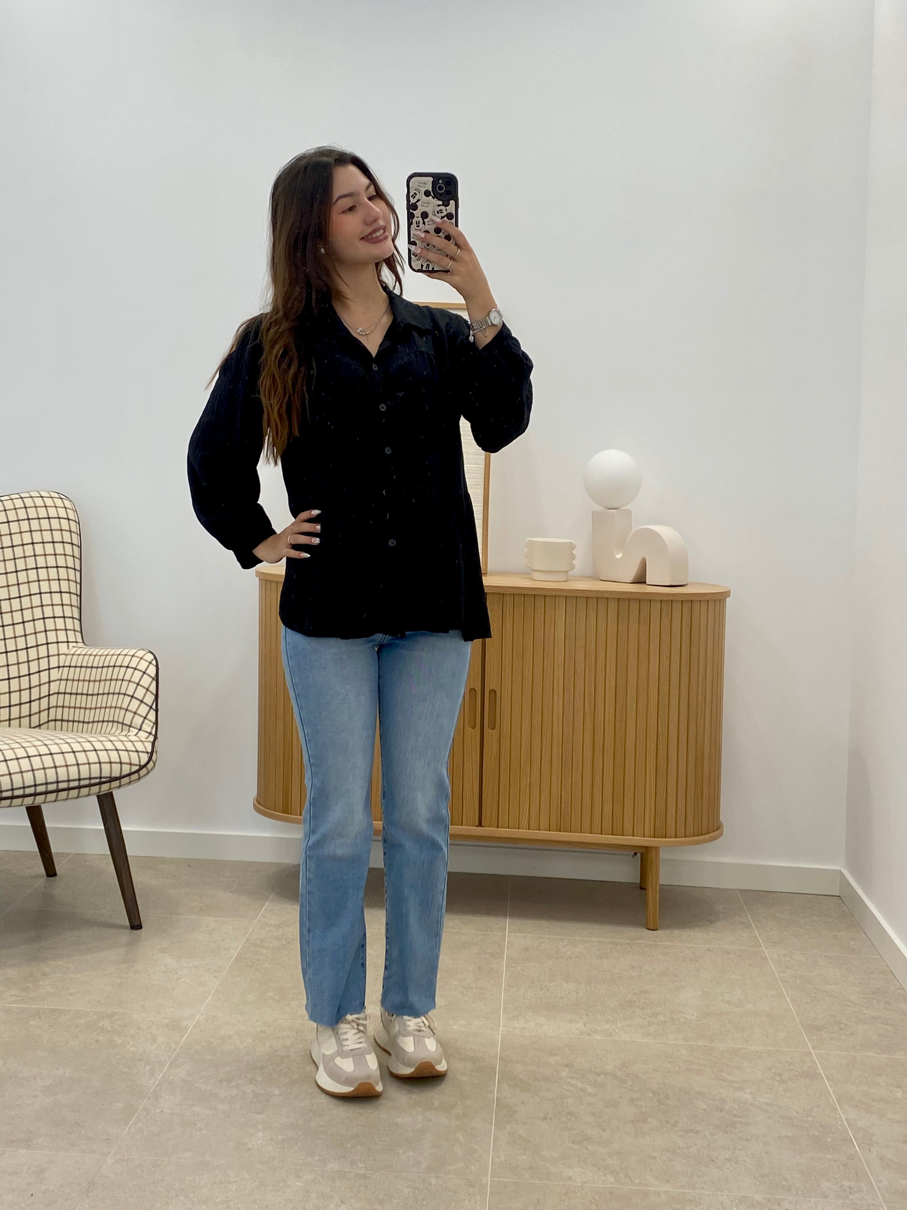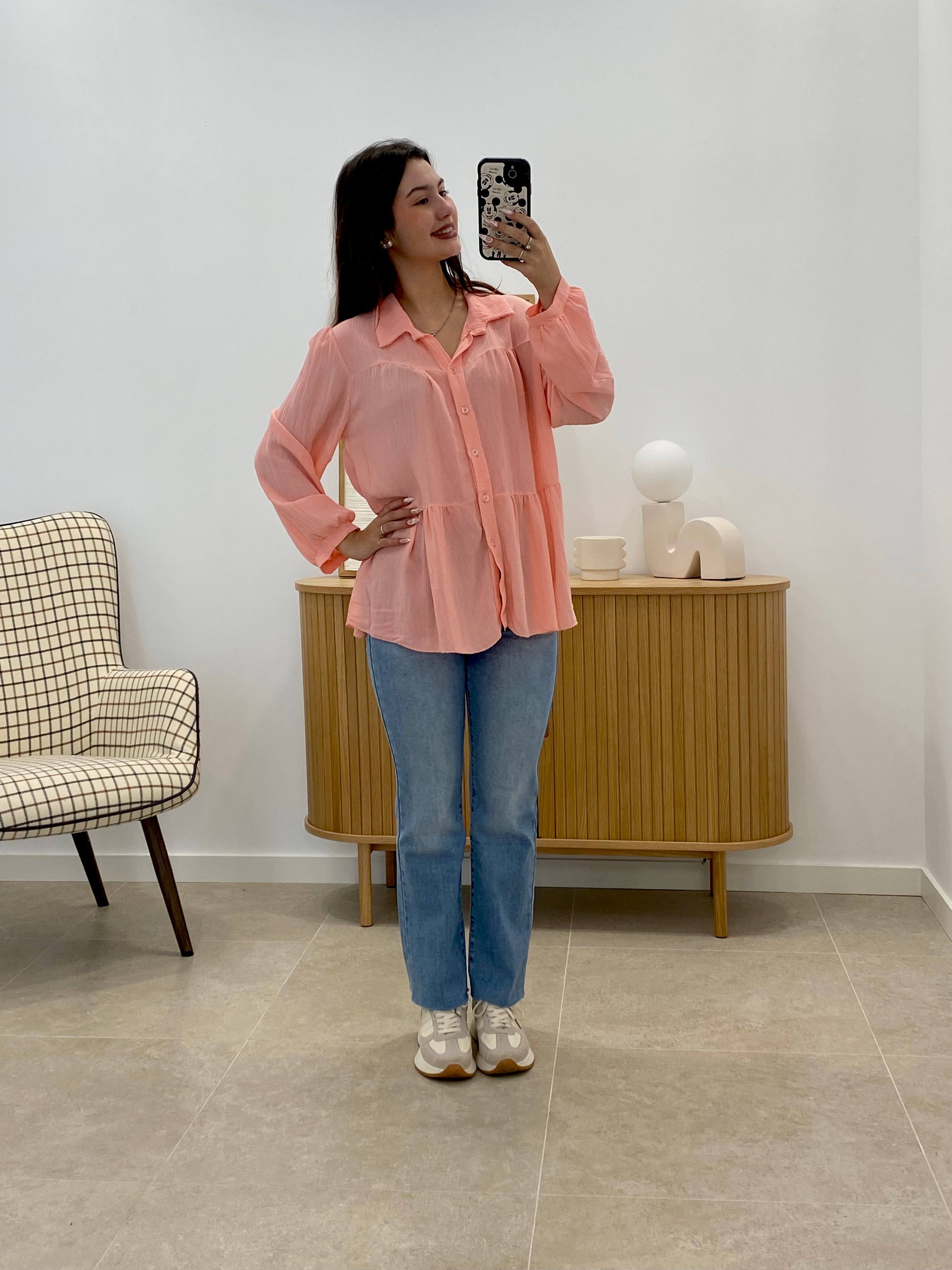 Cette chemise Lar, 100 % viscose, est une taille unique qui convient à la plupart des morphologies. Ses volants discrets lui confèrent une touche d'élégance féminine sans rien perdre de son raffinement. Idéale pour celles qui recherchent un vêtement polyvalent et doux au toucher, elle est parfaite pour les occasions alliant style et confort.