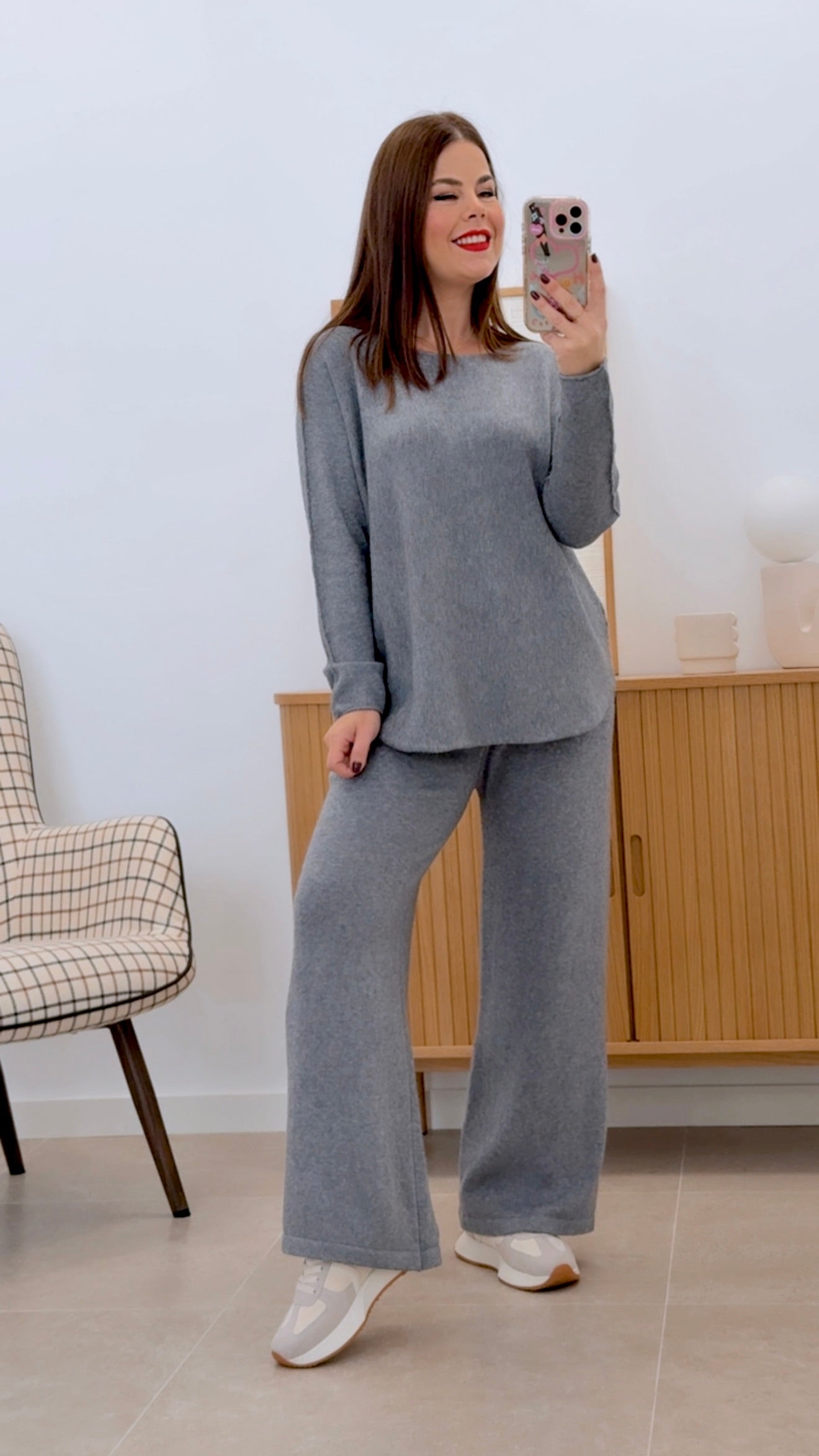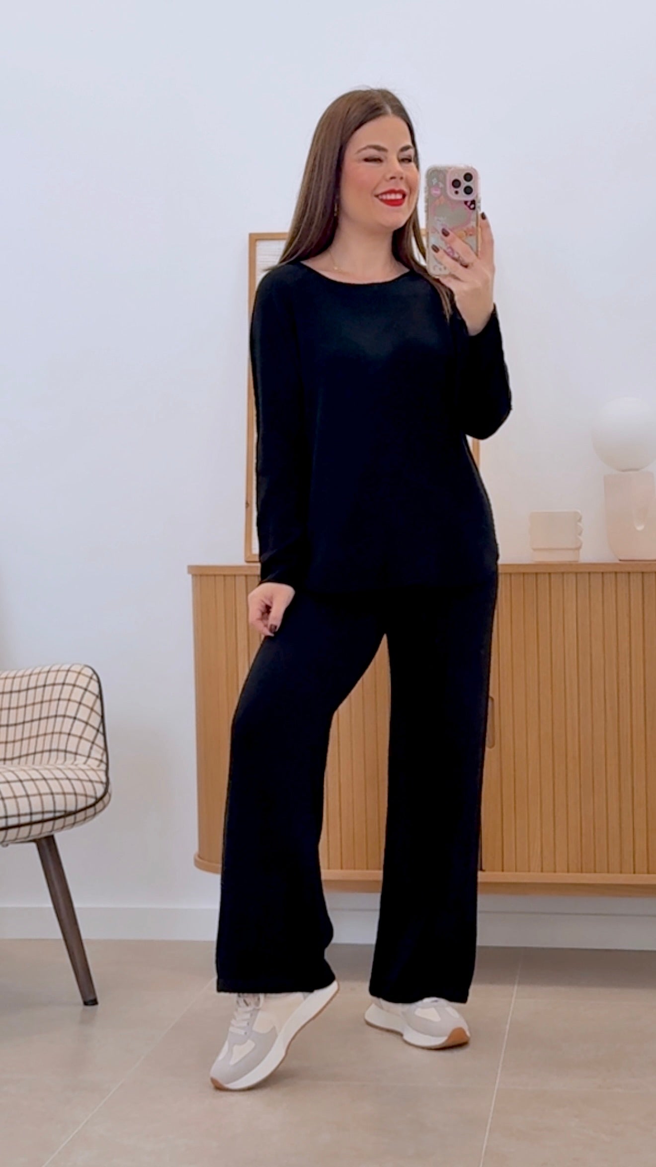 Cet ensemble en maille associe un pull à manches longues et col rond à un pantalon droit à taille élastiquée, offrant confort et style polyvalent. Conçu en taille unique convenant à toutes les morphologies jusqu'à la taille 46, il est confectionné dans un mélange de 52 % de viscose, 22 % de nylon et 26 % de PBT, garantissant douceur, résistance et un beau tombé. Idéal pour celles et ceux qui recherchent un vêtement pratique et élégant au quotidien.