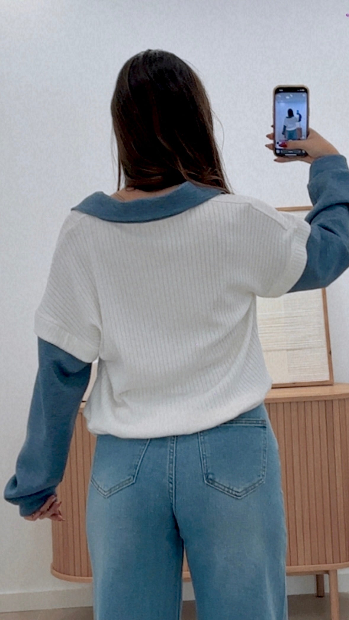 Jersey versátil confeccionado en mezcla de fibras de alta calidad: 50% viscosa, 45% poliéster y 5% elastano. Diseño único con cuello solapado que aporta elegancia y versatilidad. La combinación estratégica de tejidos y tonalidades crea un efecto visual sofisticado, mientras que el elastano garantiza comodidad y libertad de movimiento. Prenda de talla única que se adapta a diferentes siluetas, perfecta para looks casuales o más elaborados.
