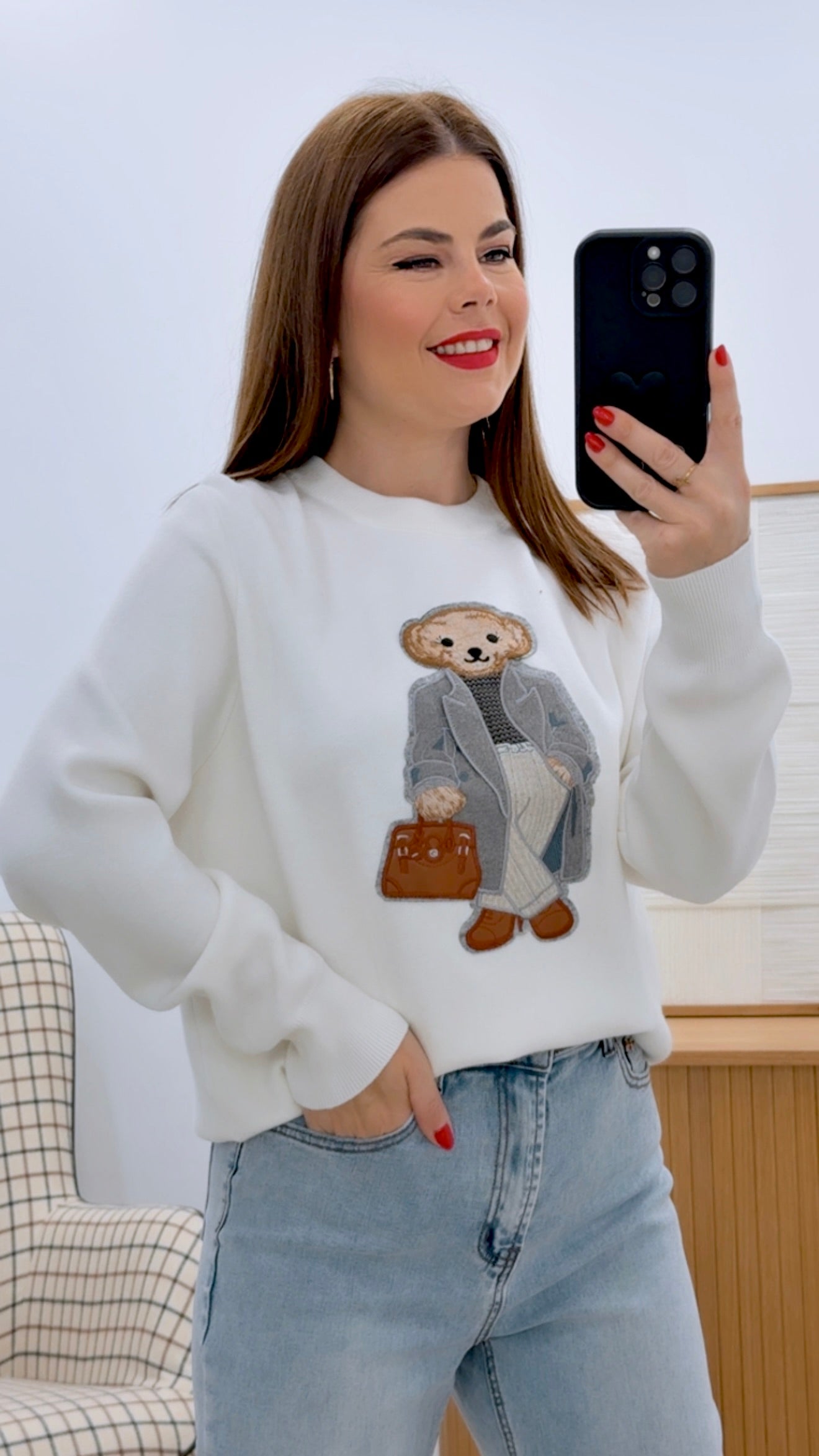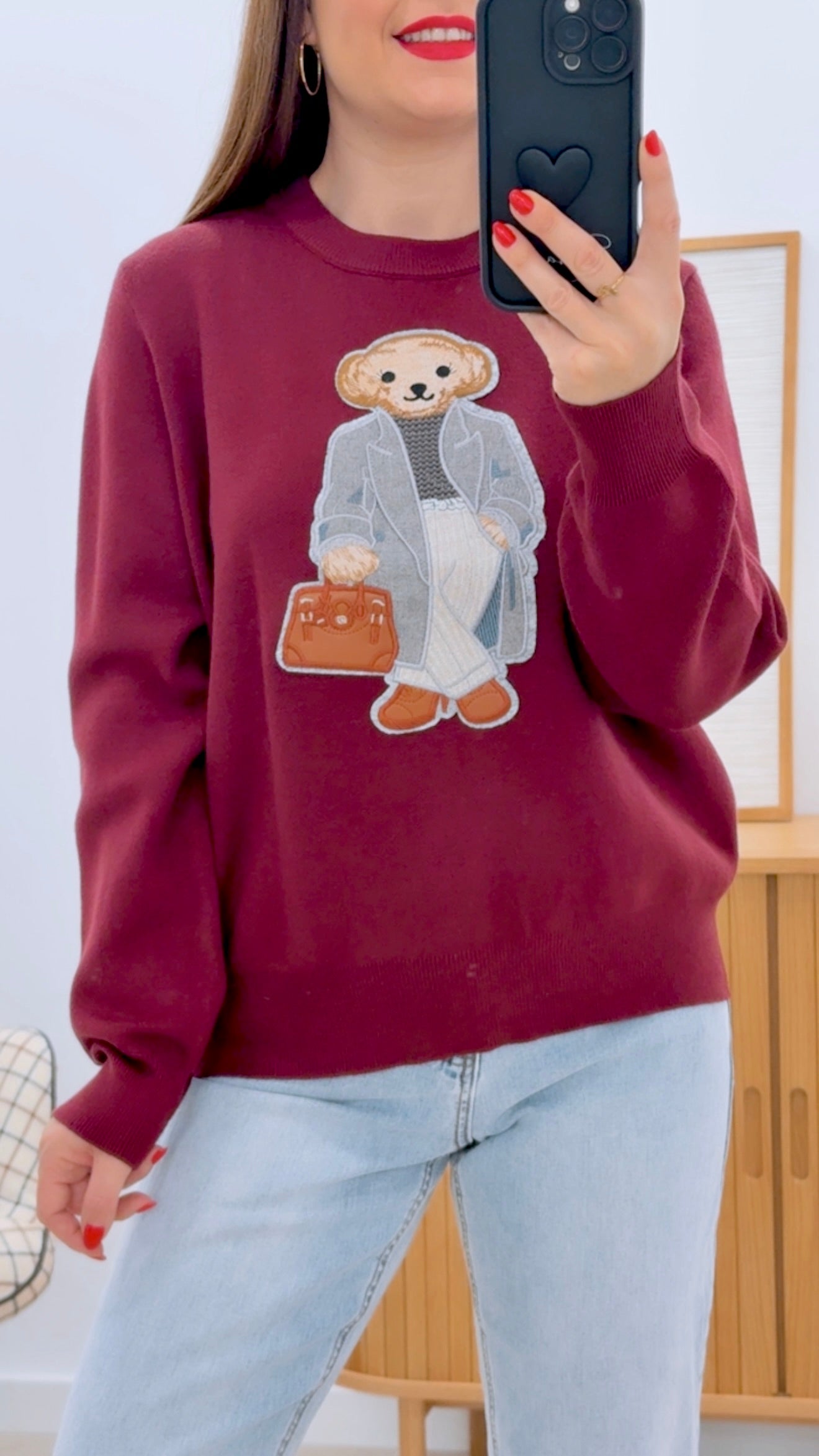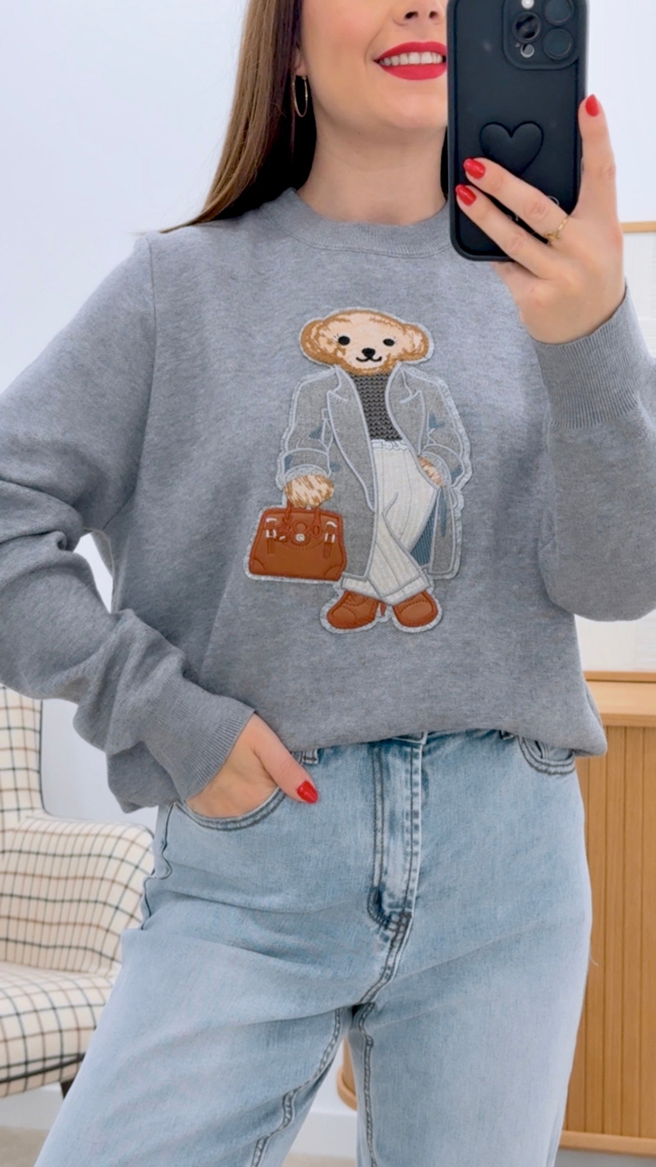 Jersey de punto liso confeccionado en una mezcla equilibrada de viscosa, poliéster y nylon que garantiza comodidad y durabilidad. Cuello redondo clásico y mangas largas que ofrecen versatilidad para cualquier estación. Destaca por su estampado de oso en la zona central, un detalle distintivo que añade carácter a tu armario. La composición textil proporciona una caída natural del tejido con excelente elasticidad y resistencia al lavado. Prenda versátil que combina funcionalidad con un toque de personalidad.