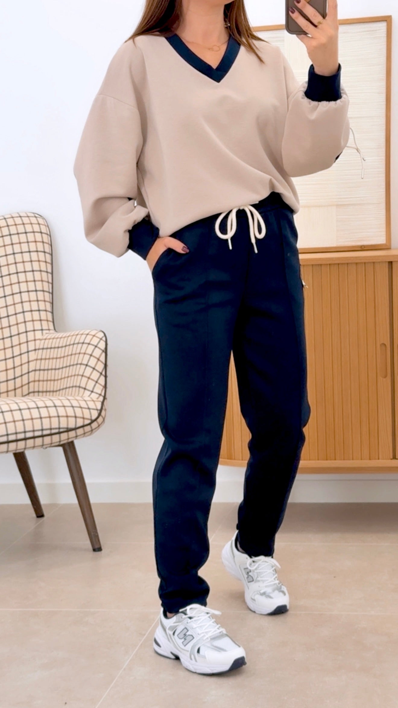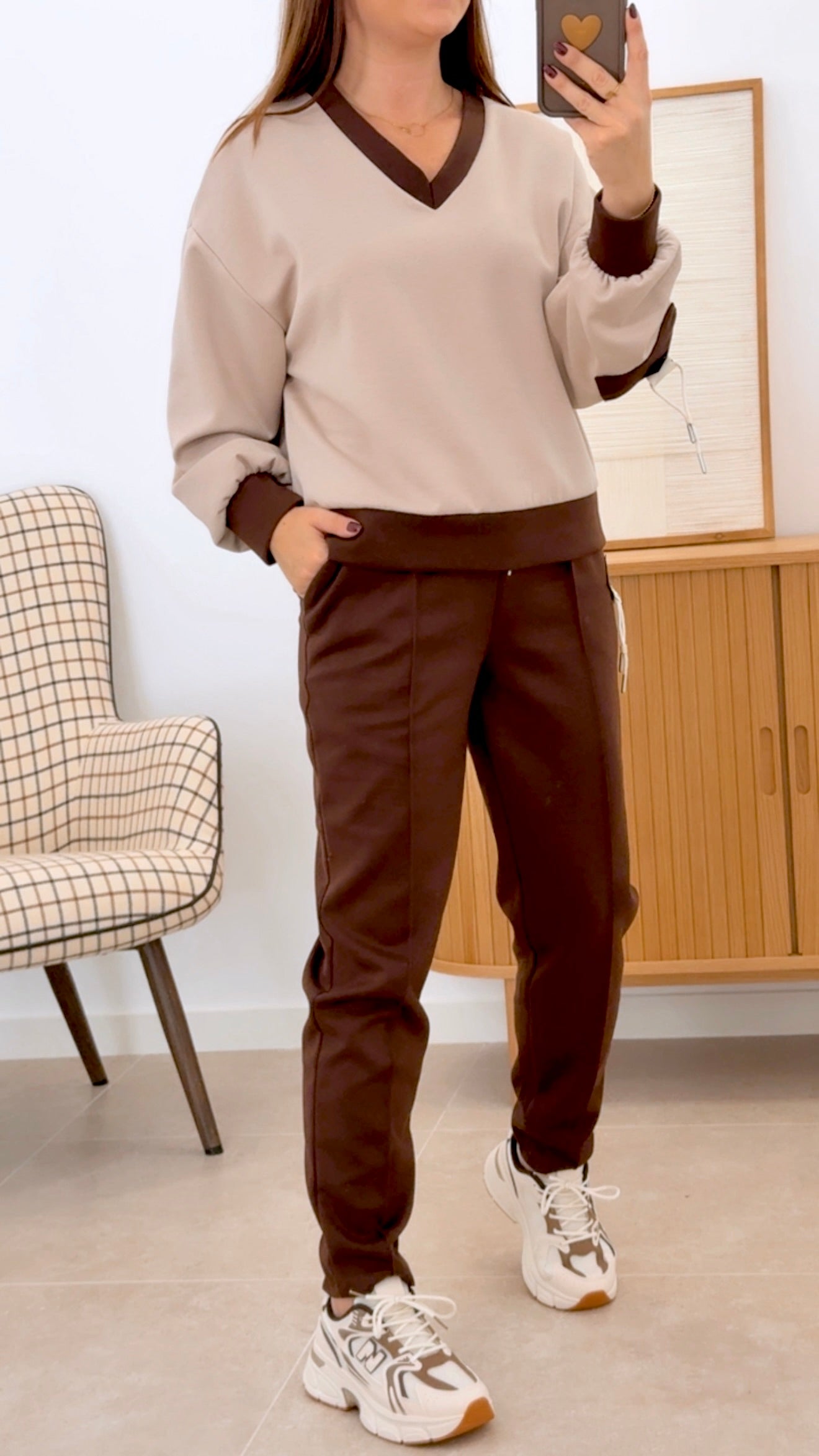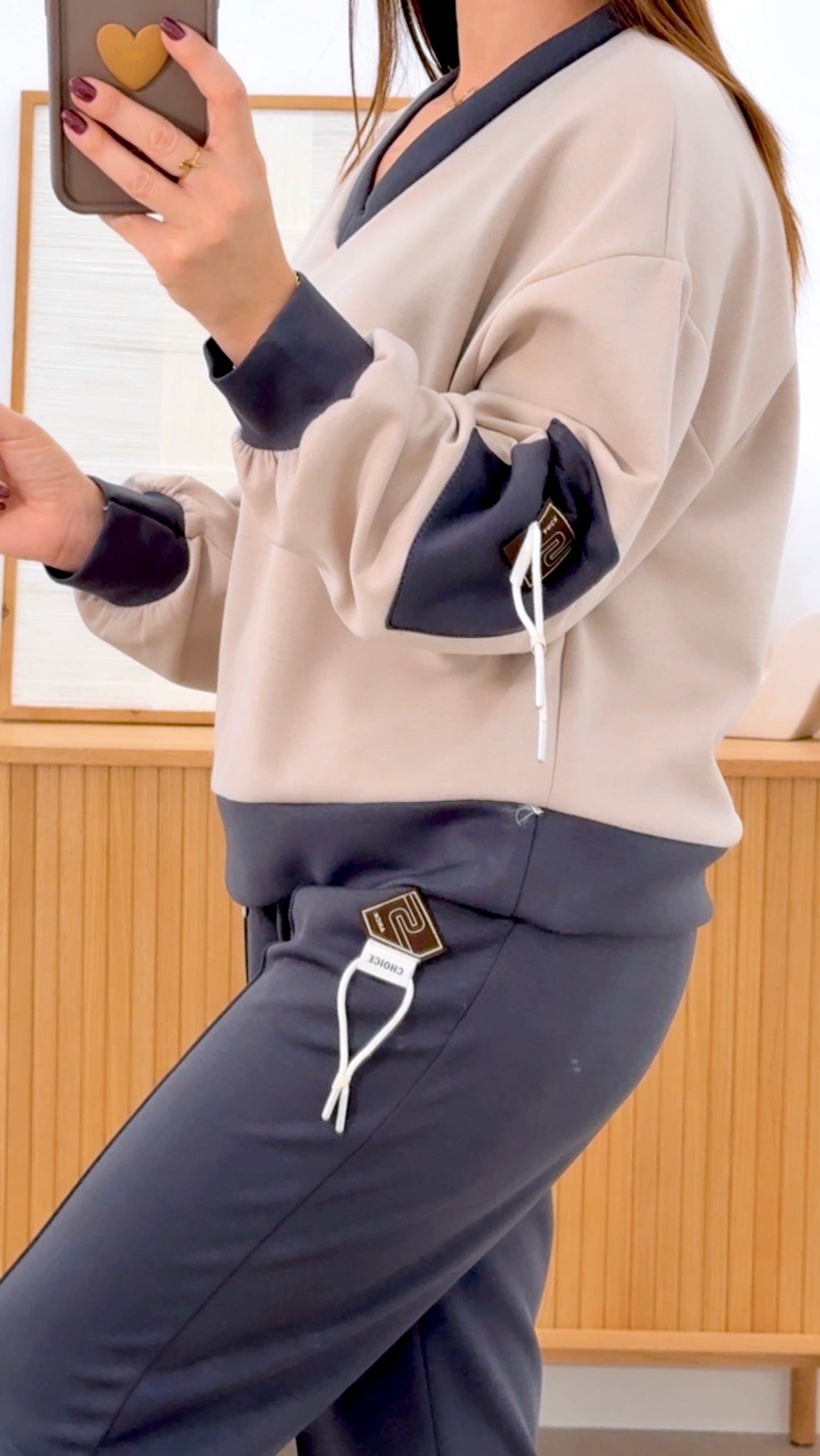 CONJUNTO SANCK: Sudadera y pantalón en tejido de poliéster que combina elegancia y comodidad. La sudadera presenta un color neutro con detalles en los extremos que armonizan con el tono del pantalón, mientras que ambas piezas lucen parches decorativos que añaden carácter al diseño. Composición: 55% poliéster, 39% viscosa y 6% elastán, proporcionando transpirabilidad y elasticidad. Talla única, ideal para un ajuste versátil y cómodo en cualquier ocasión.
