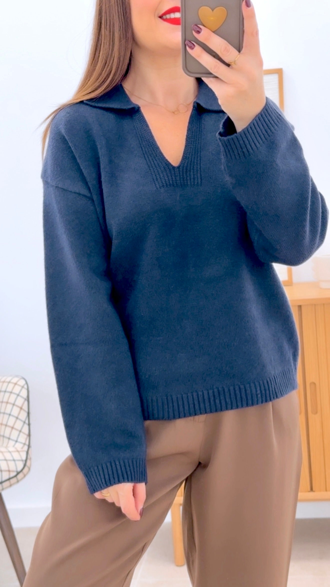 Suéter versátil confeccionado en mezcla de acrílico (64%), poliéster (26%) y nylon (10%) que garantiza durabilidad y comodidad en el uso diario. Destaca por su diseño minimalista de color liso con cuello tipo polo y escote en V, una combinación que lo hace ideal tanto para looks casuales como semi-formales. La composición de fibras proporciona excelente elasticidad y resistencia al lavado frecuente. Disponible en múltiples tonalidades para adaptarse a cualquier preferencia de estilo personal.