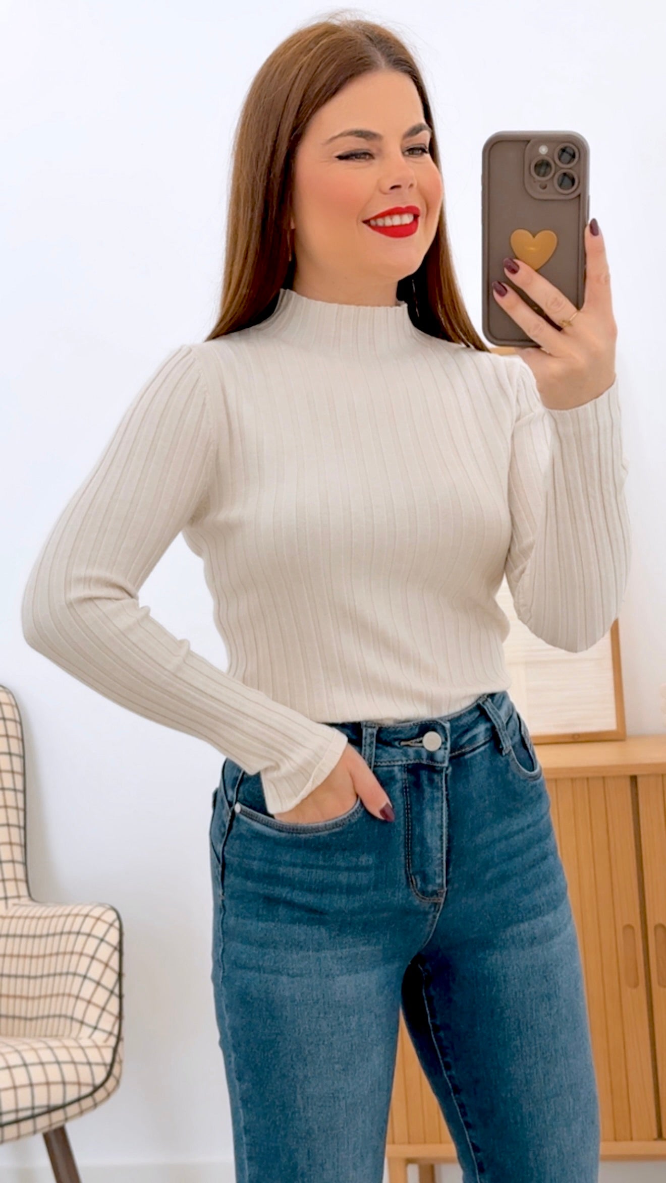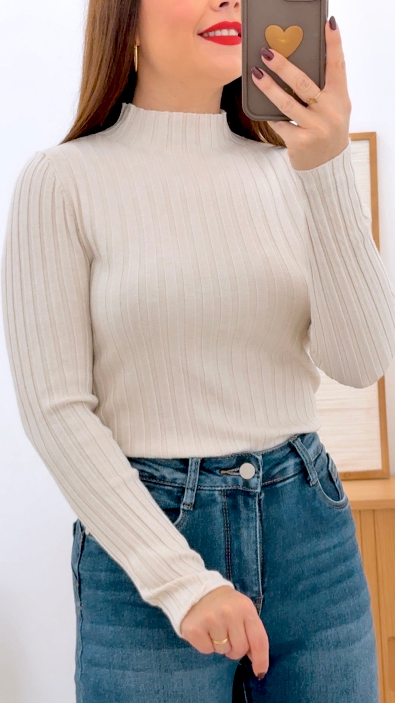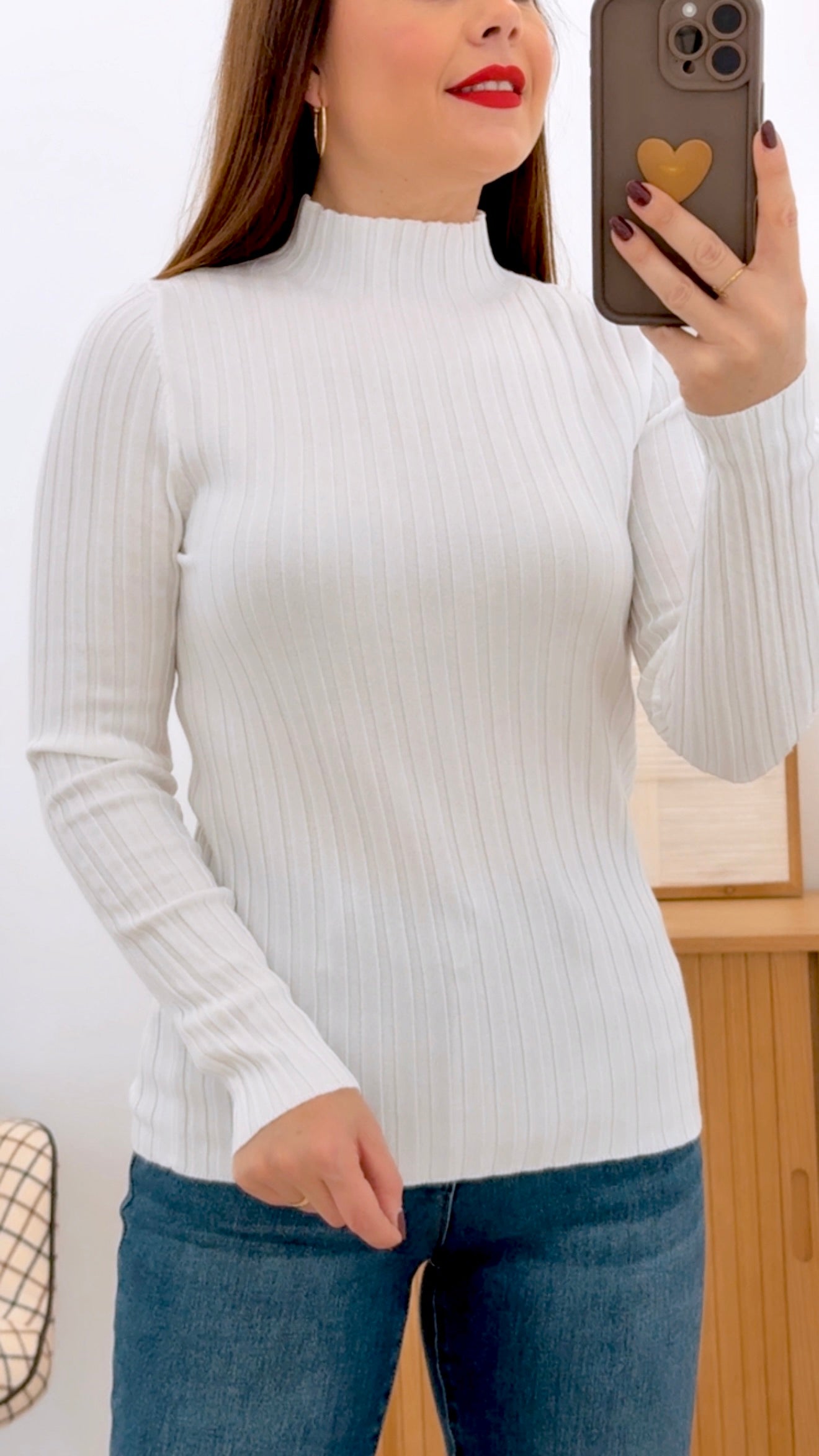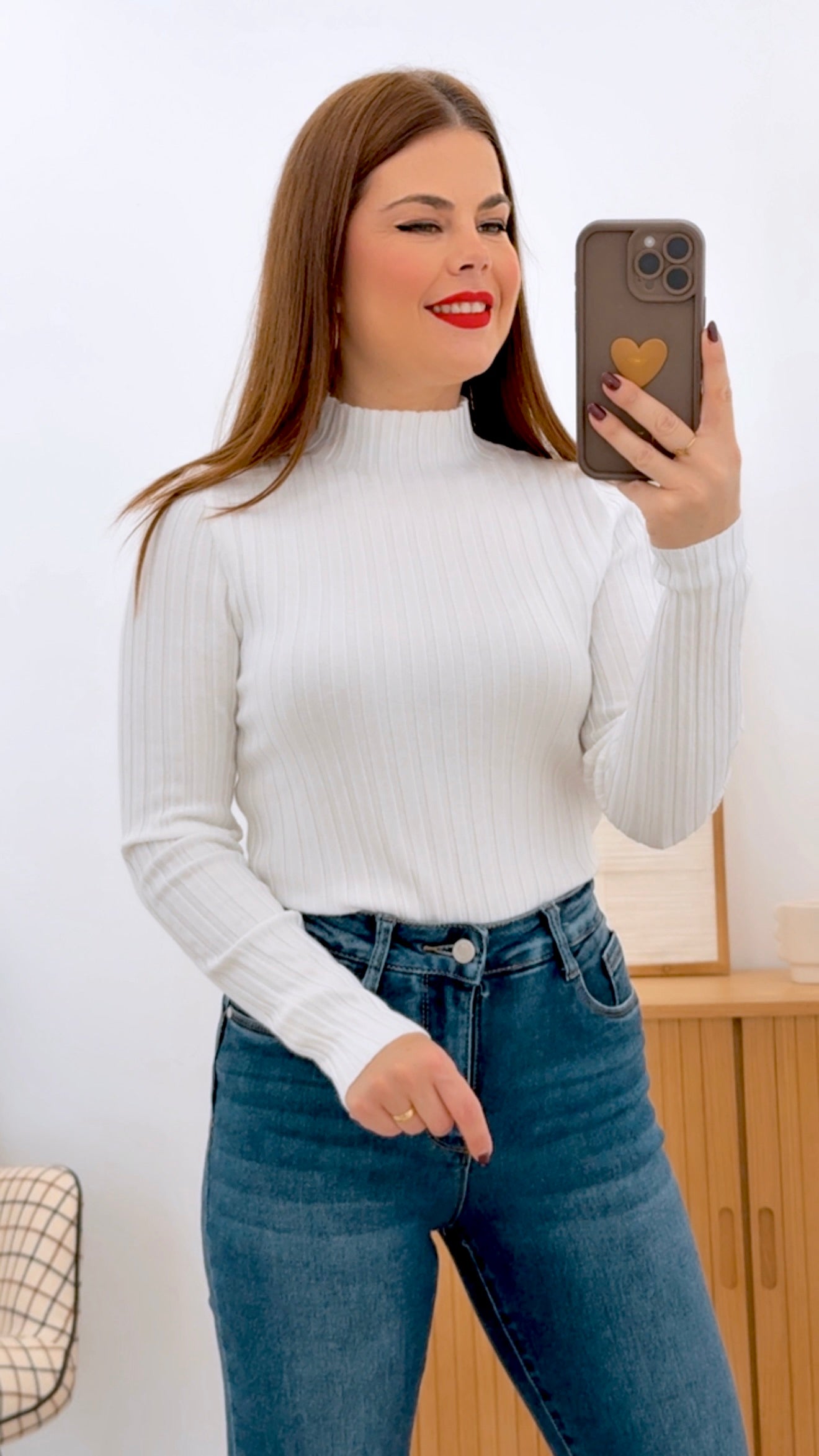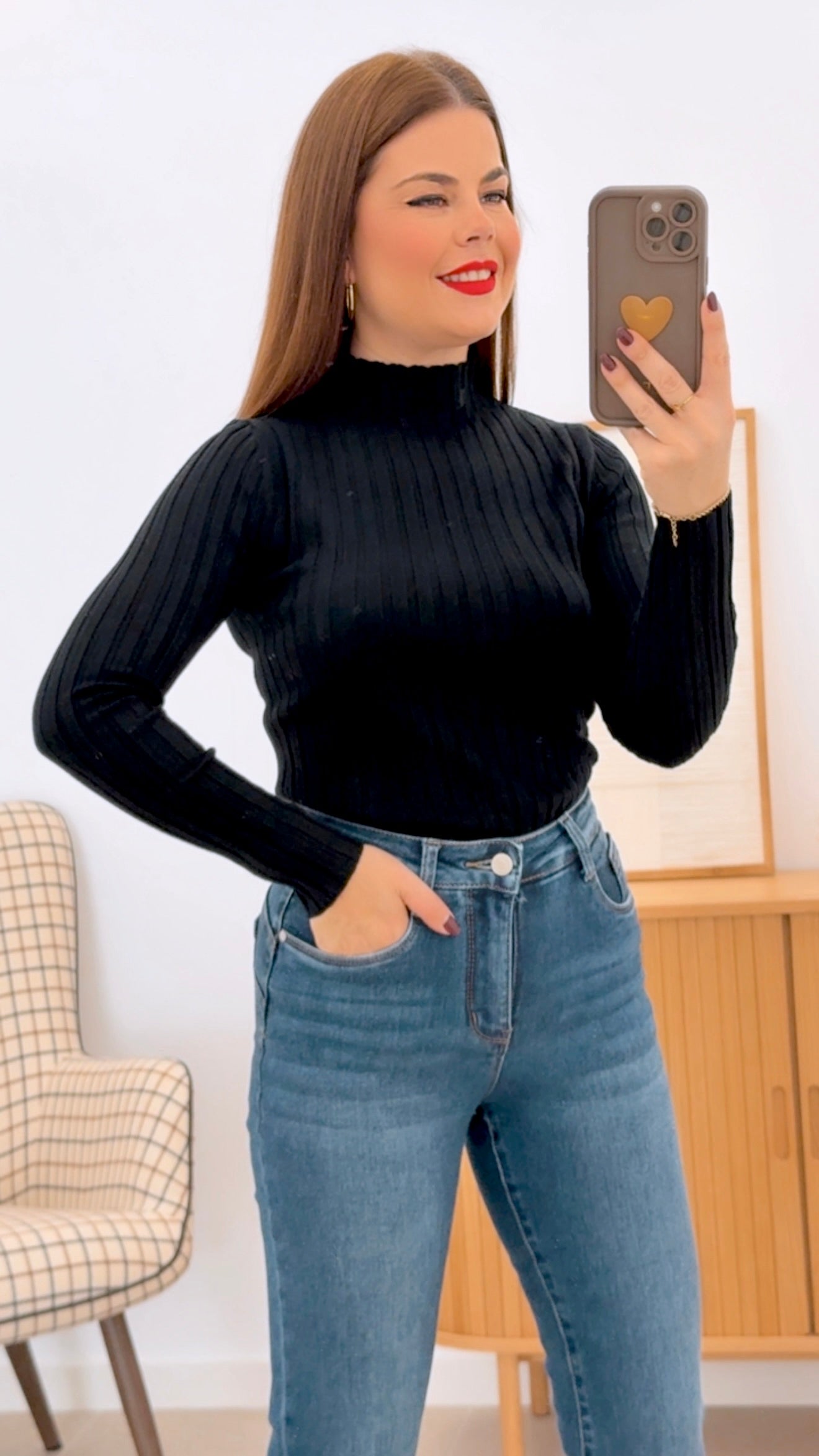 El SUÉTER KIRA es una prenda versátil de punto que combina estilo y confort. Confeccionado con un tejido de punto efecto canale de excelente calidad, destaca por su cuello perkins y mangas largas que proporcionan un acabado clásico y elegante. Su composición de 50% viscosa, 28% poliéster y 22% nylon garantiza elasticidad y durabilidad, adaptándose perfectamente al cuerpo. Disponible en múltiples colores y tallas de la 36 a la 44, es la opción ideal para cualquier guardarropa.
